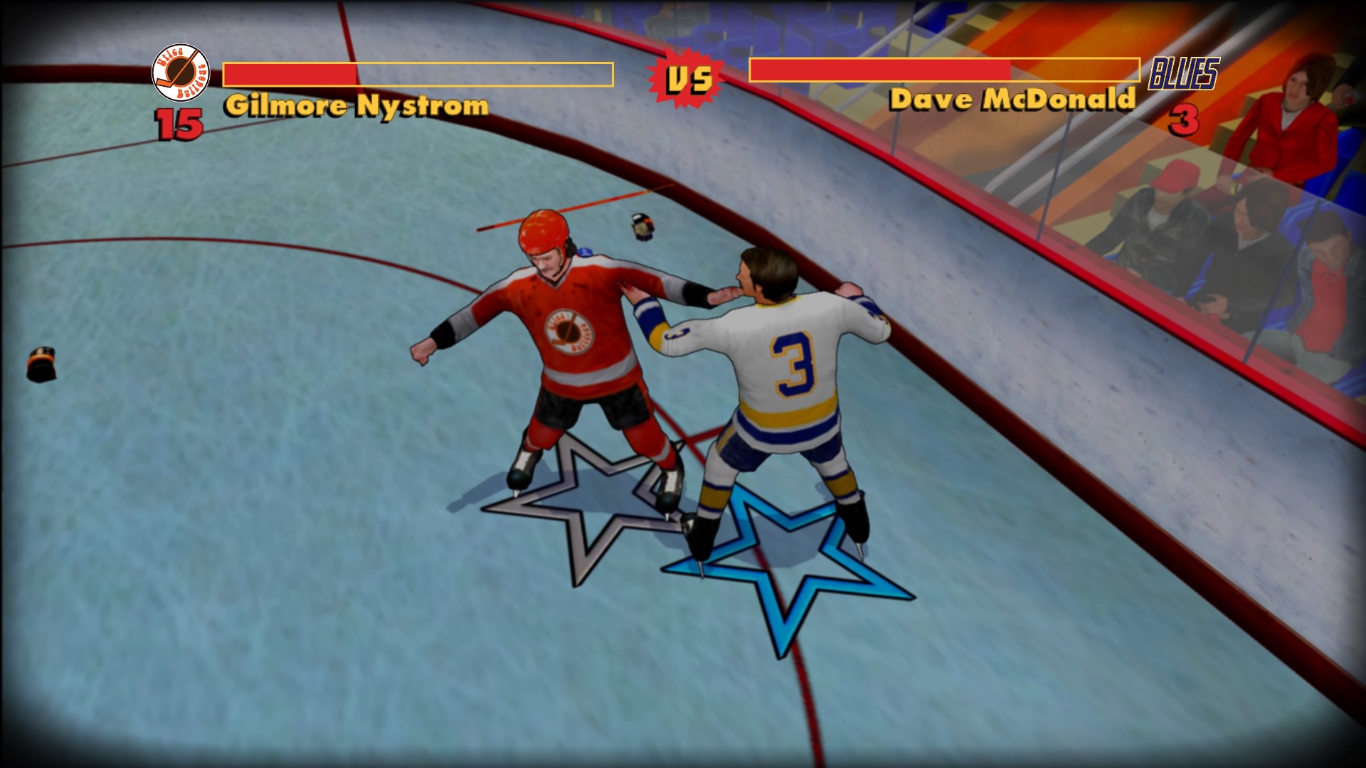 Le problème c’est qu’en général Old Times Hockey proposait de bonnes idées en matière de jouabilité malgré ses gros défauts mentionnés dans le paragraphe précédent. Pour ajouter à cette ambiance arcade, les développeurs ont ajouté des éléments tels que la rondelle de feu qui vous donne rapidité et force de tir, mais aussi la possibilité d’effectuer d’énormes mises en échec y compris sur les arbitres. Cependant, ces ajouts ne sont pas en nombre suffisant pour faire oublier tous les défauts.