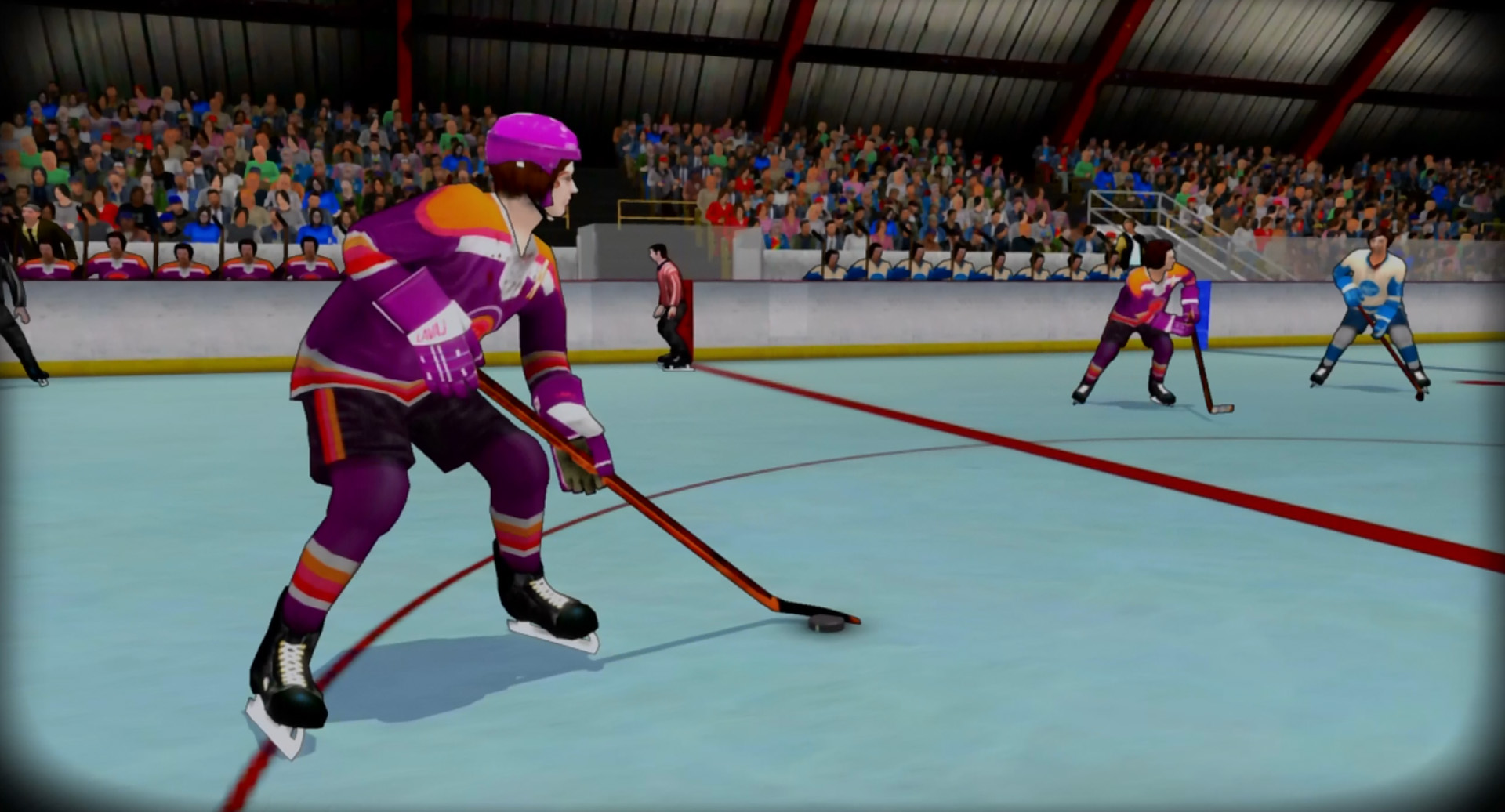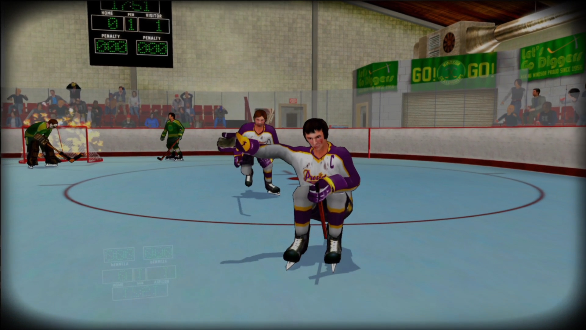 Afin que toute l’histoire et la violence lors des parties soient cohérentes, les développeurs du studio de Vancouver ont utilisé notre technologie actuelle pour effectuer un retour dans le passé. On y retrouve un style graphique nous rappelant fortement les premiers jeux de hockey, mais aussi des menus en violet pour y ajouter un peu de couleurs. Même le type de police utilisé pour l’écriture a été choisi en fonction de l’ambiance que souhaitaient intégrer les développeurs dans Old Times Hockey. Visuellement, le tout peut sembler très laid et désagréable à l’œil. Cependant avec un jeu comme celui-ci, V7 Entertainment a visé dans le mille et propose un aspect visuel cohérent. Même si j’espérai avoir un peu plus de finition sur les textures, je ne peux que féliciter le bon travail des développeurs afin de proposer une ambiance unique en son genre.