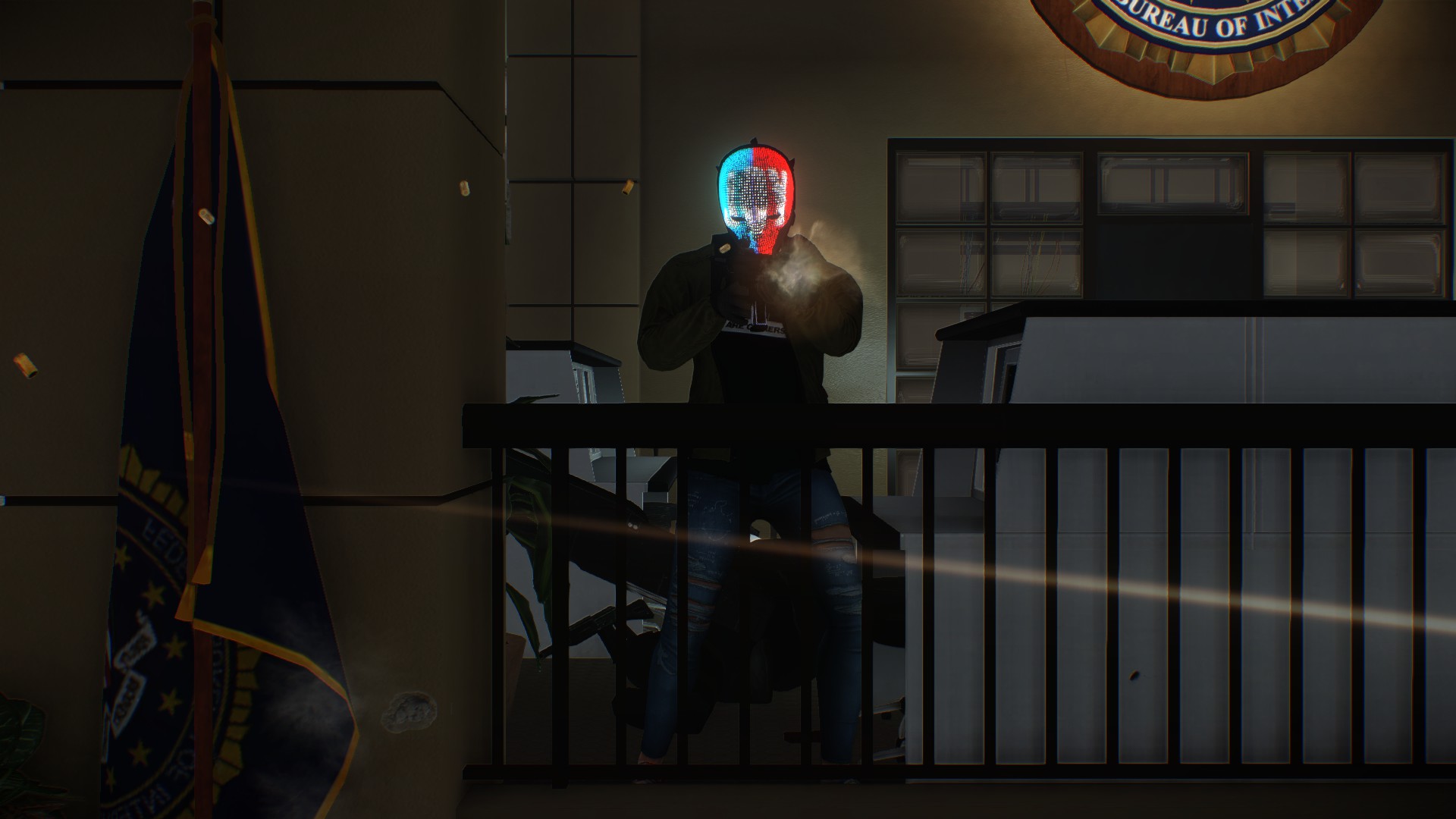 En plus de n’offrir aucune fonctionnalité pour discuter vocalement, la version Switch de PayDay 2 souffre aussi visuellement. En mode portable, le jeu atteint une résolution de 720p. Ceci étant dit ce n’est pas un énorme problème avec la dimension de l’écran de la console. Le point qui est un peu plus dérangeant est que malgré que les développeurs affirment que cette version tourne en 30 fps, il suffit d’une simple fusillade avec plusieurs personnages pour que l’on descende en dessous de cette limite. Le jeu devient alors beaucoup moins fluide sans compter qu’en mode télévision rien ne s’arrange à ce niveau même si la résolution est passée à 1080p. La fluidité a toujours quelques soucis et les textures n’ont clairement pas été réalisées pour cette résolution. Les décors sont souvent flous lorsqu’on s’y attarde un peu plus. Je vous conseille fortement de passer directement en mode portable pour avoir un minimum de plaisir sur le jeu.