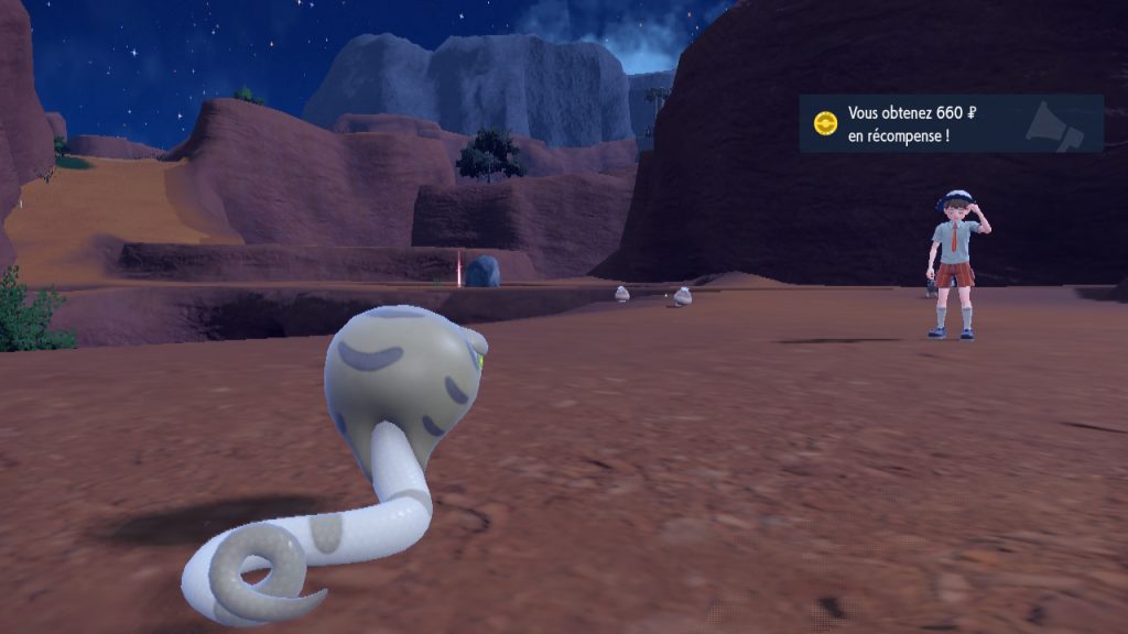 Avec cette grandeur vient aussi une diversité de l’environnement. Il y a quelques déserts, des petites forêts, des montages, un volcan, de la neige et même quelques grottes. Il y a tout de même des distances qui paraissent vides,m. Ça reste un peu mieux que le Pokémon précédent avec un peu plus de gazon et l’effet du vent dans celui-ci. N’empêche qu’on demeure loin de Breath of the Wild par contre, ce qui s’explique mal 5 ans après sa sortie.