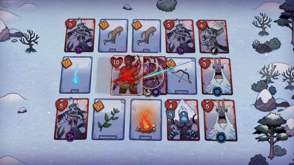 Avant d’entrer dans les détails de l’expérience Pyrene, il est important de comprendre qu’est-ce que c’est qu’un deckbuilder roguelike. En d’autres mots, le joueur doit créer un ensemble de cartes pour devenir de plus en plus puissant. En augmentant votre puissance, il est possible d’avancer dans l’histoire et d’affronter des adversaires de plus en plus imposants. L’aspect roguelike se définit par le fait que la mort est un élément clé de l’expérience développé par Two Tiny Dice. En effet, vous allez mourir à de nombreuses reprises et aller perdre votre progression si vous n’avez pas réussi à vous rendre au bout. Cependant, vous récoltez des ressources qui vous permettent d’améliorer vos compétences pour faciliter votre voyage.