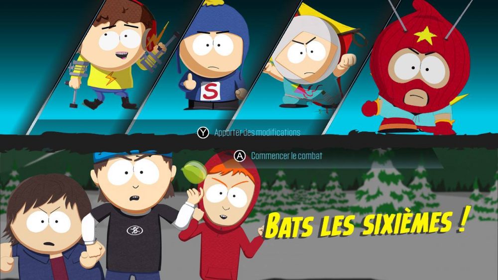 La réalisation est tout simplement sublime. Honnêtement, on a l’impression, peu importe la phase de jeu, que l’on se trouve dans la série. À travers le Nouveau, votre personnage, vous venez en aide aux habitants de la ville. Très orienté « jeu de rôle », on y trouve tous les aspects relatifs au genre : attaque au tour par tour, pouvoirs surnaturels, fabrication d’articles, fiches du personnage, etc. Bien sûr, le tout est enrobé de la couche South Park comme on la connaît, soit une bonne dose de vulgarité. C’est pourquoi on s’adresse principalement aux amateurs de la série. Pour les autres, le jeu s’apprécie pour ce qu’il est, mais perd de son charme si l’on ne comprend pas les références.
