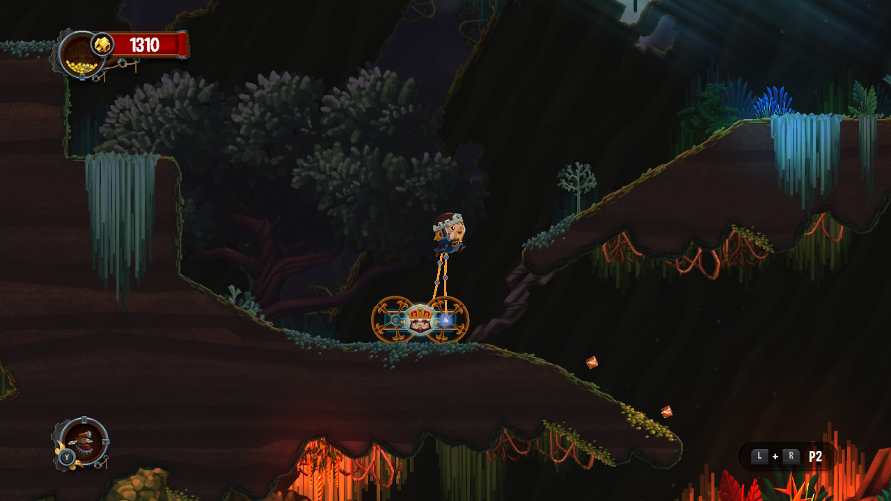 Les différents niveaux en solo peuvent parfois être assez répétitifs, se limitant seulement à tirer et pousser le chariot. La coopération ouvre quant à elle un tout nouveau monde. Déjà que les niveaux sont gigantesques, certaines sections sont seulement atteignables à deux. Jouer avec une autre personne nous amène également à penser les niveaux d’une toute autre façon et varie quelque peu la jouabilité.
