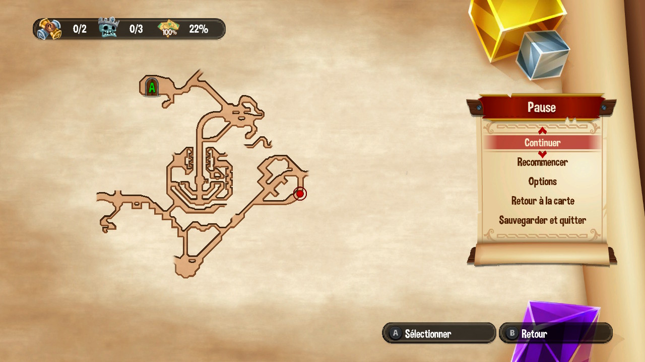 C’est bien beau la balade et la récolte de trésors, mais il faut rester sur nos gardes! En effet, des ennemis peuvent parfois nous attaquer afin de récupérer les pierres précieuses que nous avons récolter. On peut se défendre avec les projectiles uniques à chaque personnage, que ce soit les épées de la princesse ou les cailloux de son fiancé. Malheureusement, les ennemis, comme des chauves-souris, ne sont présents qu’à de rares moments, ce qui mène à des niveaux plutôt vides et extrêmement répétitifs.
