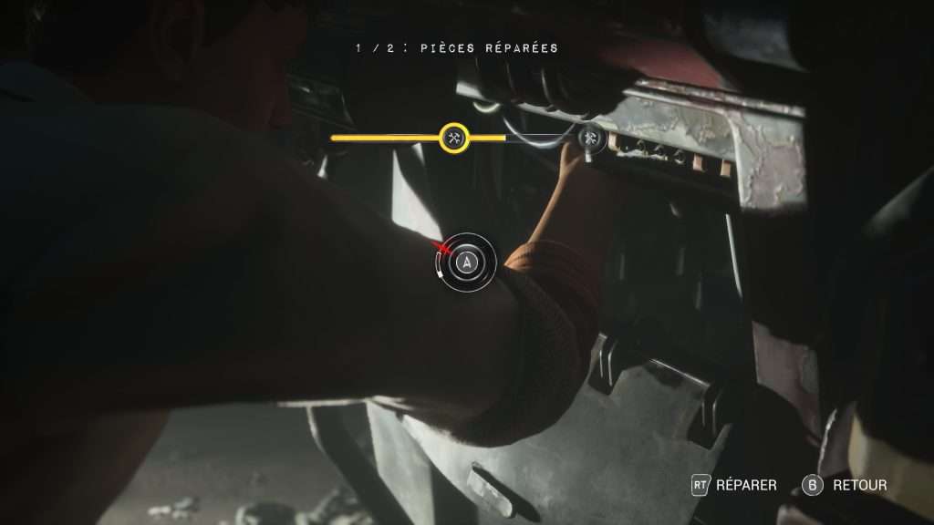 Ce n’est pas un secret, Supermassive Games est reconnu pour offrir des expériences se rapprochant plus d’un long-métrage interactif qu’un jeu vidéo avec de nombreuses mécaniques. The Casting of Frank Stone n’échappe pas à cette règle et nous sommes souvent uniquement un joueur très peu actif. Il y a bien quelques actions à effectuer alors que les développeurs ont repris le système des générateurs de Dead by Daylight, mais dans l’ensemble on se retrouve devant une jouabilité passive. Lorsque l’on a la chance de parcourir les niveaux, on tourne souvent en rond et il y a très peu d’éléments avec lesquels interagir. C’est dommage, car à plusieurs moments je me suis dit qu’il y aurait été possible d’ajouter un peu plus d’objets. Il y a quelques items à collectionner, mais ceux-ci n’ont pas d’incidence directe sur notre aventure.