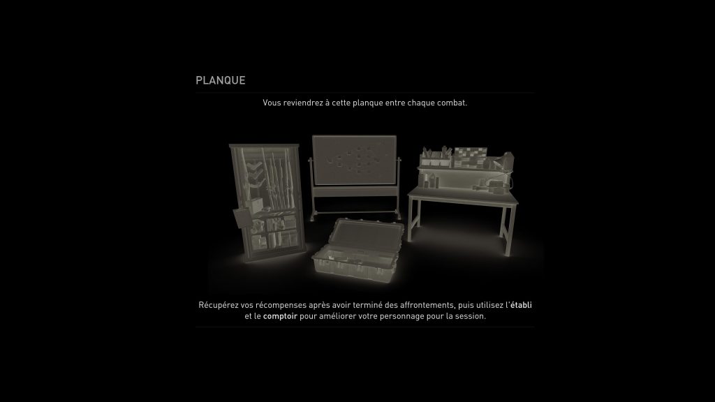 Pour ce qui est du mode No Return, vous pouvez le voir comme un mode pour tester votre maitrise de chacune des armes, des aptitudes et des différents personnages. Vous allez, tout d’abord, choisir votre protagoniste et l’environnement dans lequel vous voulez évoluer. N’oubliez pas, le principe d’un roguelike est de mourir…souvent et de recommencer. La planque va donc devenir votre endroit de prédilection pour vous préparer pour les prochains combats. Chacun des personnages possèdent ses propres traits distinctifs. Donc, à vous de voir ce que vous préférez et enfin, terroriser le boss final…si vous vous rendez vivant.