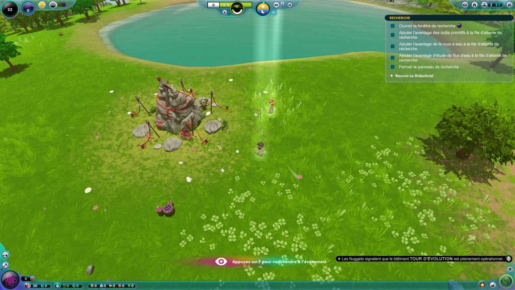 En termes de jouabilité, The Universim est assez facile à prendre en main. Si vous avez déjà joué à un jeu du même genre, vous ne serez clairement pas dépaysée. C’est à nous, en tant que joueur, de définir les prochaines évolutions de nos nuggets, les bâtiments à construire en priorité, etc. Pour ce faire, les développeurs du studio Crytivo proposent un didacticiel assez complet qui permet d’être accompagné au fur et à mesure. Cependant, il faut s’accrocher, car même si les consignes sont plutôt précises, il faut faire ses propres expériences. Les erreurs sont communes et il ne faut pas avoir peur d’en commettre. C’est de cette manière, à mon avis, que l’on apprend le plus dans ce type de jeu.