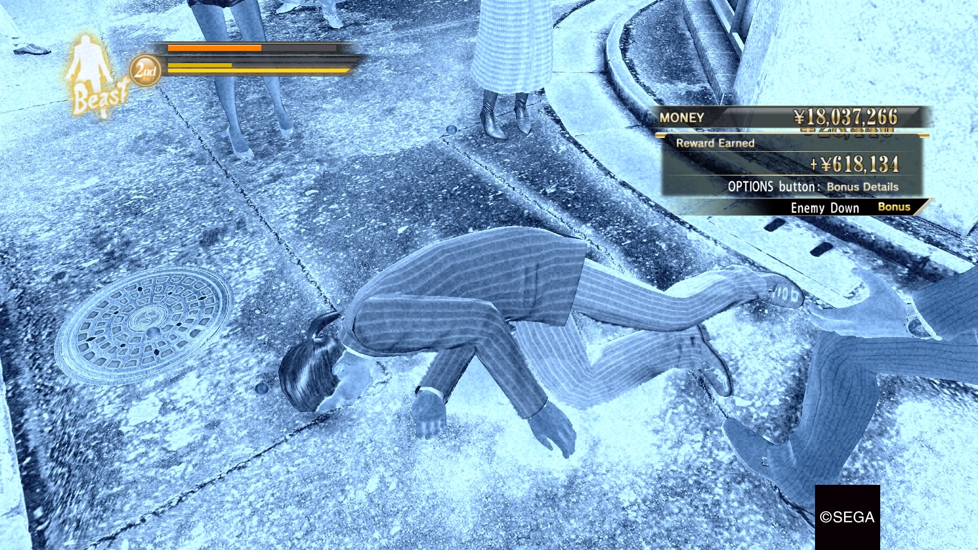 Toutefois, chacun des personnages principaux possède son arsenal d’arts martiaux. En fait, Kiryu et Majima pratiquent trois styles de combats bien différents que l’on apprend et perfectionne tout au long du jeu. Sans trop entrer dans le détail, certains de ces styles sont disjonctés et très intéressants. Par exemple, le Beast Style permet de ramasser tout objet qui passe dans notre champ de vision et l’utiliser pour nous battre. Des vélos, des vases, des affiches publicitaires, tout y passe. Ensuite, le Breaker Style est simplement une technique de combat utilisant des mouvements de breakdancing, ce qui est pratique lorsqu’il y a beaucoup d’ennemis contre vous.