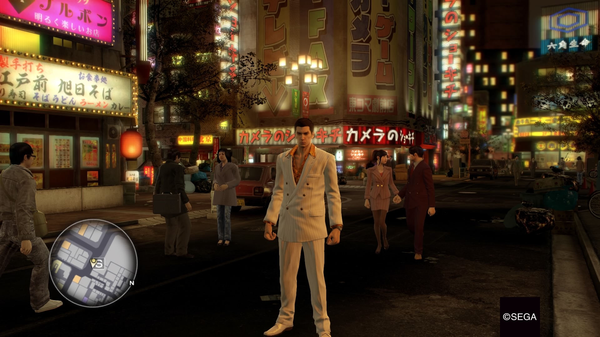 Pour continuer dans la même veine en ce qui a trait à l’environnement de base du jeu, le Japon des années 80 est fidèlement reproduit dans toute sa mégalomanie. Surutilisation des lumières et des néons, quantité incroyable de lieux de divertissements de toutes sortes et rappels d’éléments de la culture populaire du temps font que ce retour dans le passé est grandement réussi.