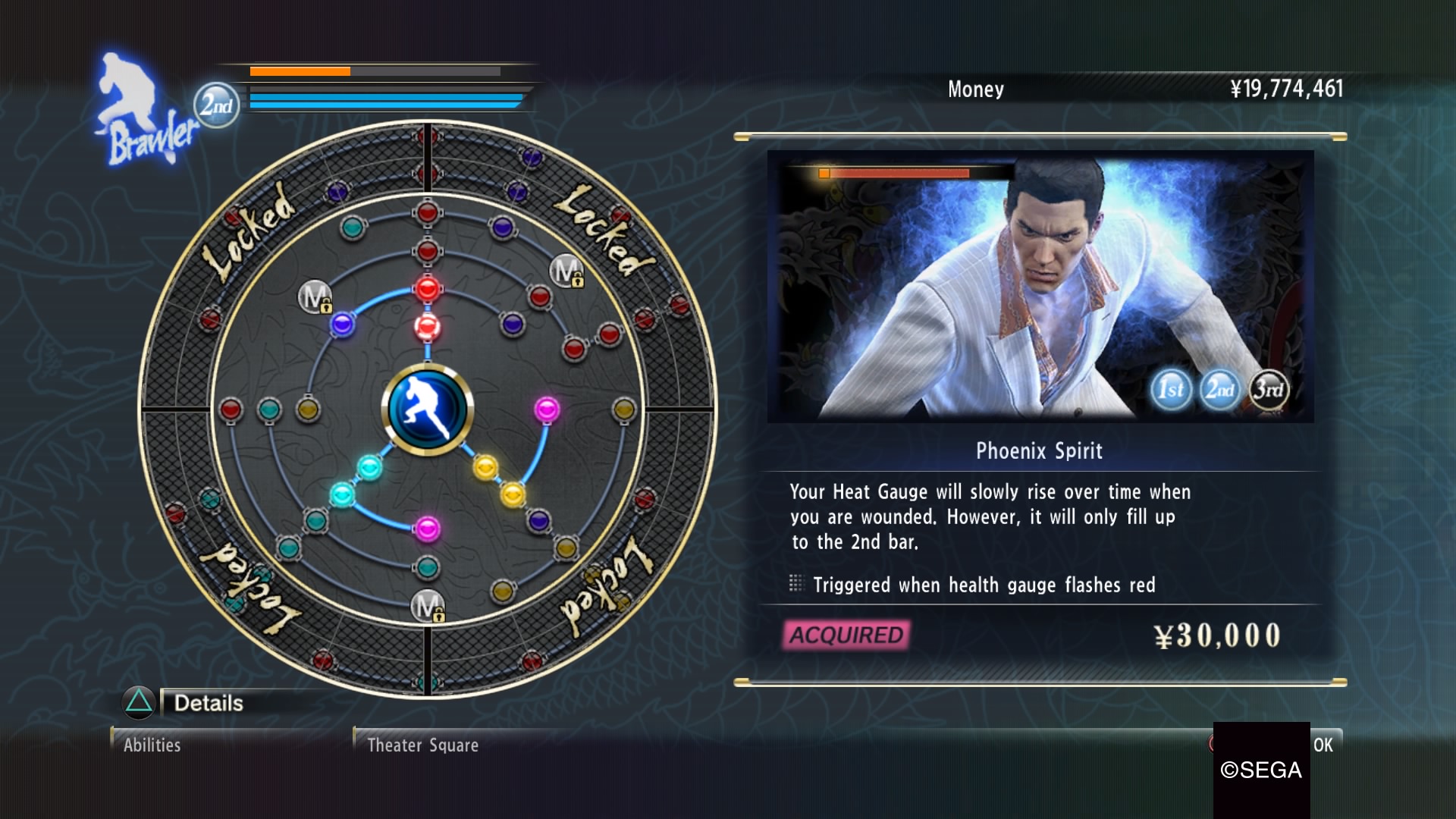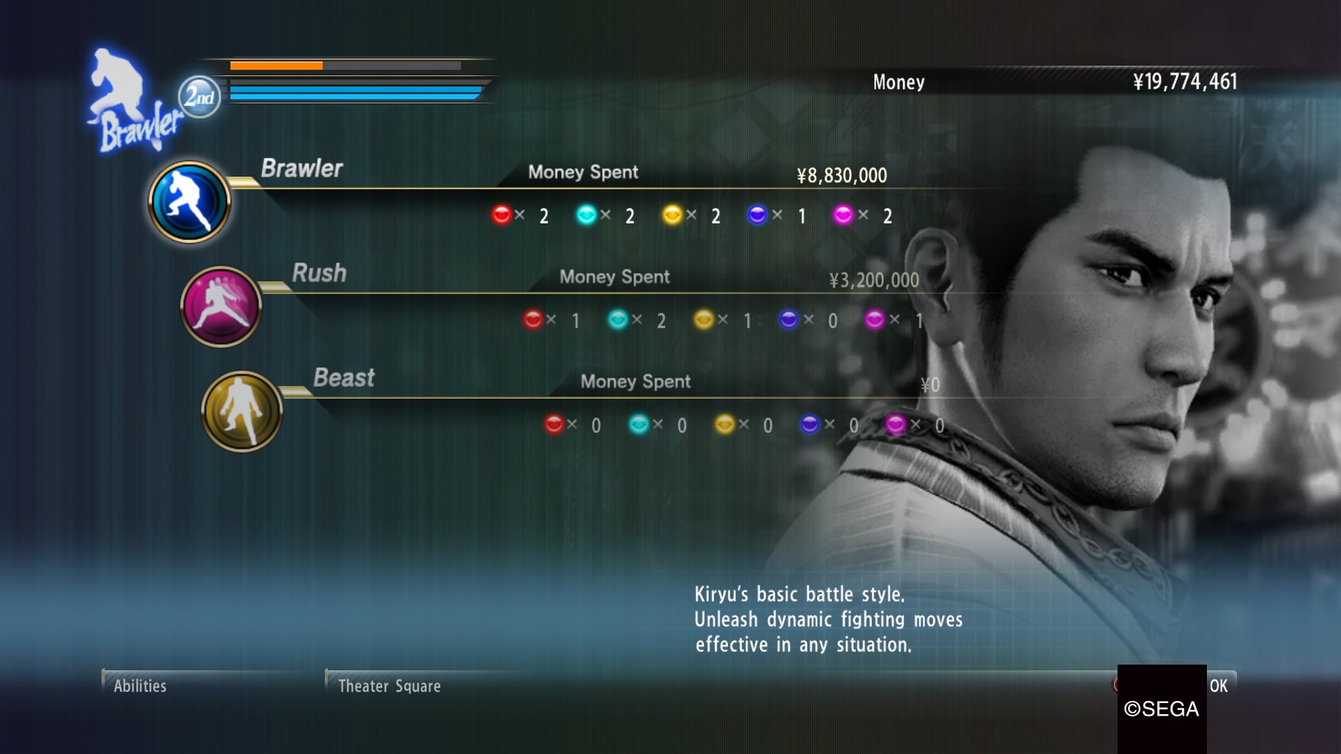 Tout d’abord, le jeu se veut un RPG d’action. À mon avis, on peut également inverser les deux termes et dire que Yakuza 0 est jeu d’action à monde ouvert où des éléments de jeux de rôles sont présents. La succession de quêtes et de combats nous rapporte de l’argent (yens) qui est en fait une devise échangeable contre des biens, mais également pour acheter des nouvelles habiletés et compétences à nos personnages.