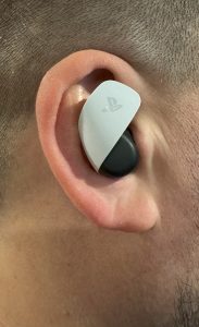 La première chose que je me suis dite quand j’ai ouvert la boîte des PULSE Explore, c’est à quel point je trouvais l’étui cool. On a l’impression d’avoir un modèle réduit de la PlayStation 5 dans la paume des mains. Avec ses couleurs noires et blanches et le logo PlayStation dans un des coins, l’ensemble s’agence bien à la console. Puis, lorsqu’on fait glisser l’étui pour prendre les écouteurs dans nos mains, on remarque leur forme assez inusitée. La partie du bas est assez bombée, ce qui fait contraste avec les écouteurs boutons qui sont de plus en plus fins. Je me demandais bien comment ça allait tenir dans mes oreilles.