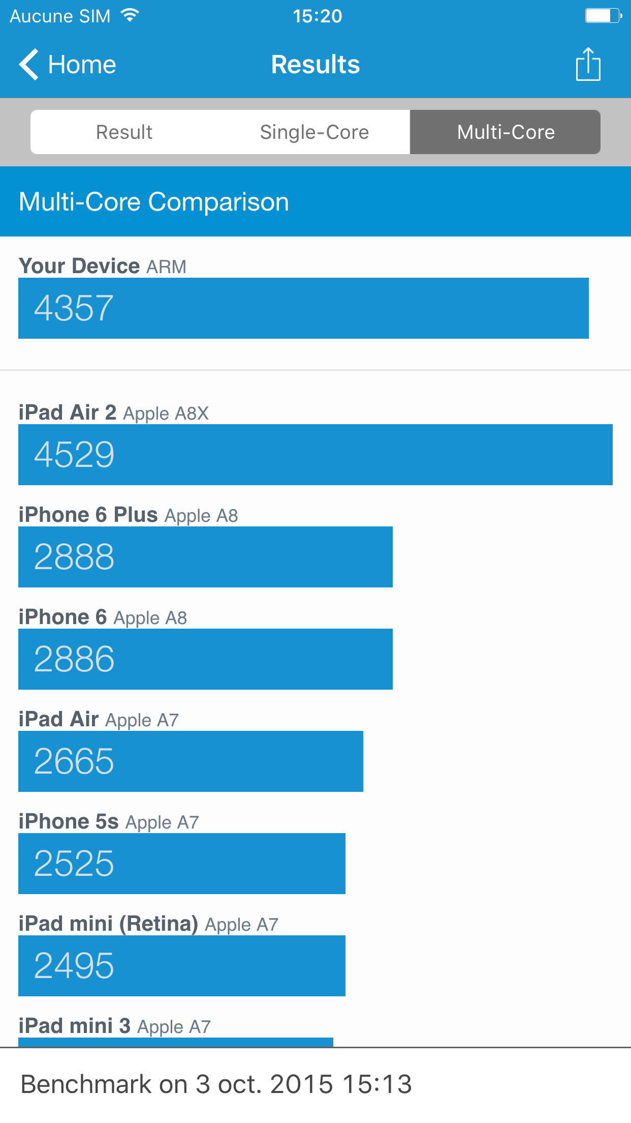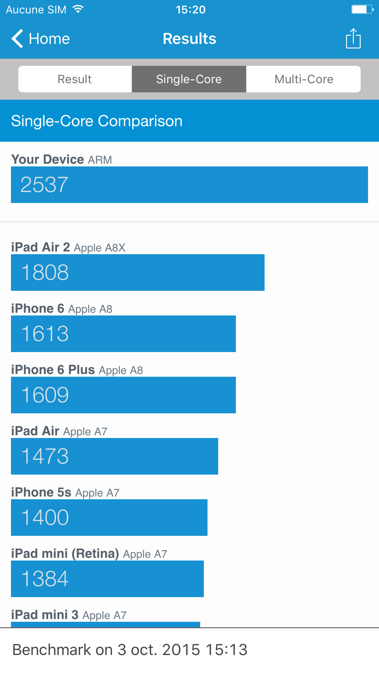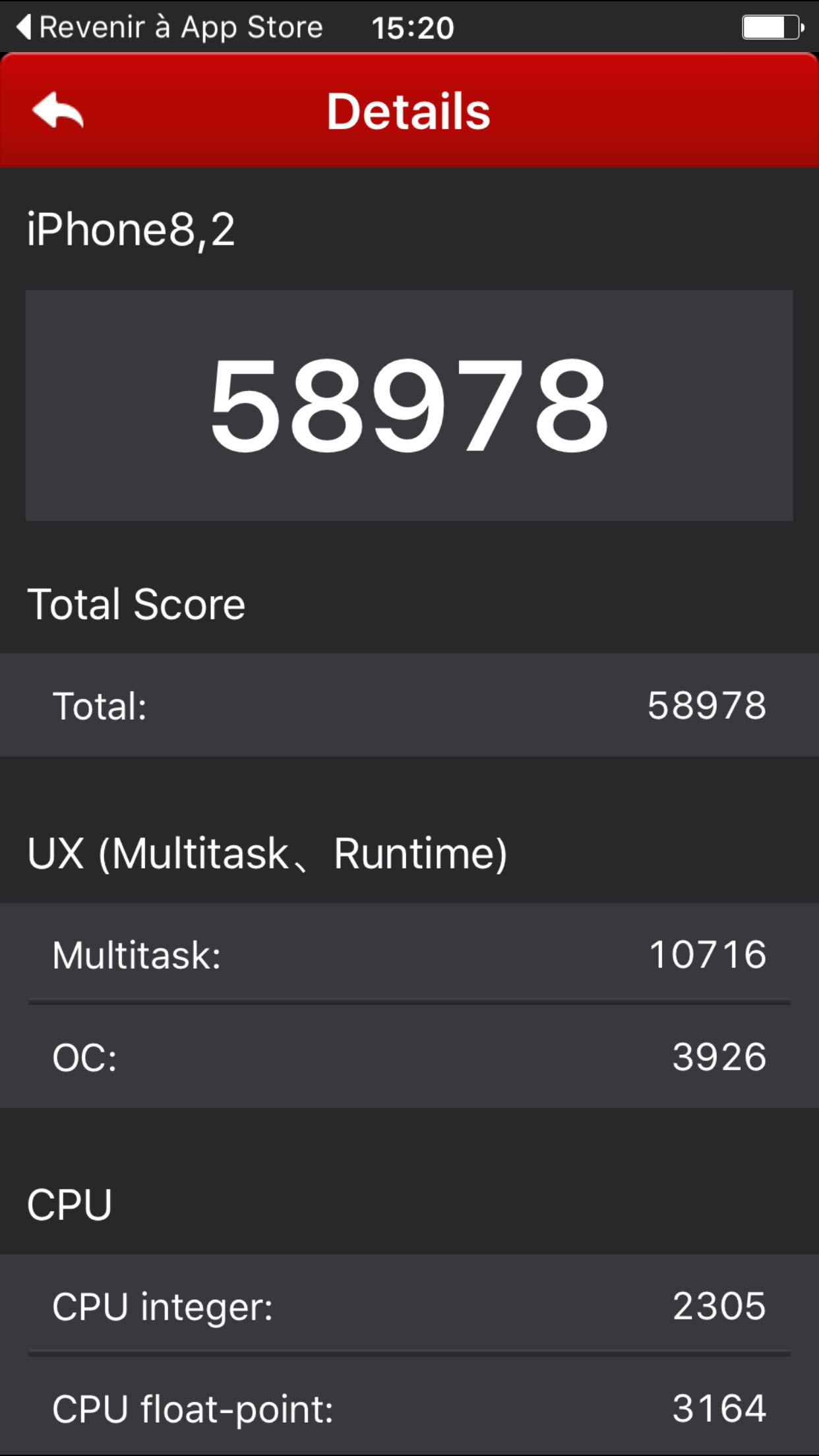 Le iPhone 6s et 6s Plus partageant les mêmes composants, on peut s’attendre à la même amélioration par rapport à la génération précédent. Apple nous annonce des performances fortement en hausse, avec un processeur central 70% plus rapide et un processeur graphique 90% plus rapide. Ce sont en effet de très jolis chiffres et nous avons tenté de les vérifier dans des outils de benchmark ainsi que voir si cela se reflétait en utilisation quotidienne.