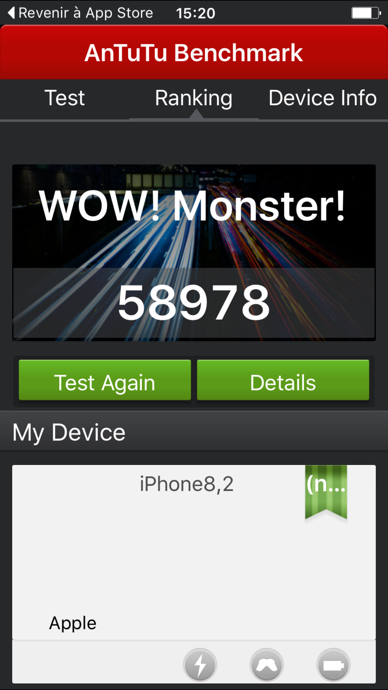 Au niveau des benchmarks, tout d’abord, on constate en effet une nette progression entre les deux générations. On passe ainsi de 1631 à 2537 en test un cœur et de 2871 à 4357 dans le test multicœur de Geekbench. Le score Antutu passe également de 25790 à 45751. On est donc généralement plus proches des 60% d’augmentation de performances que des 70% annoncés par Apple, mais c’est tout de même une progression remarquable entre deux générations.
