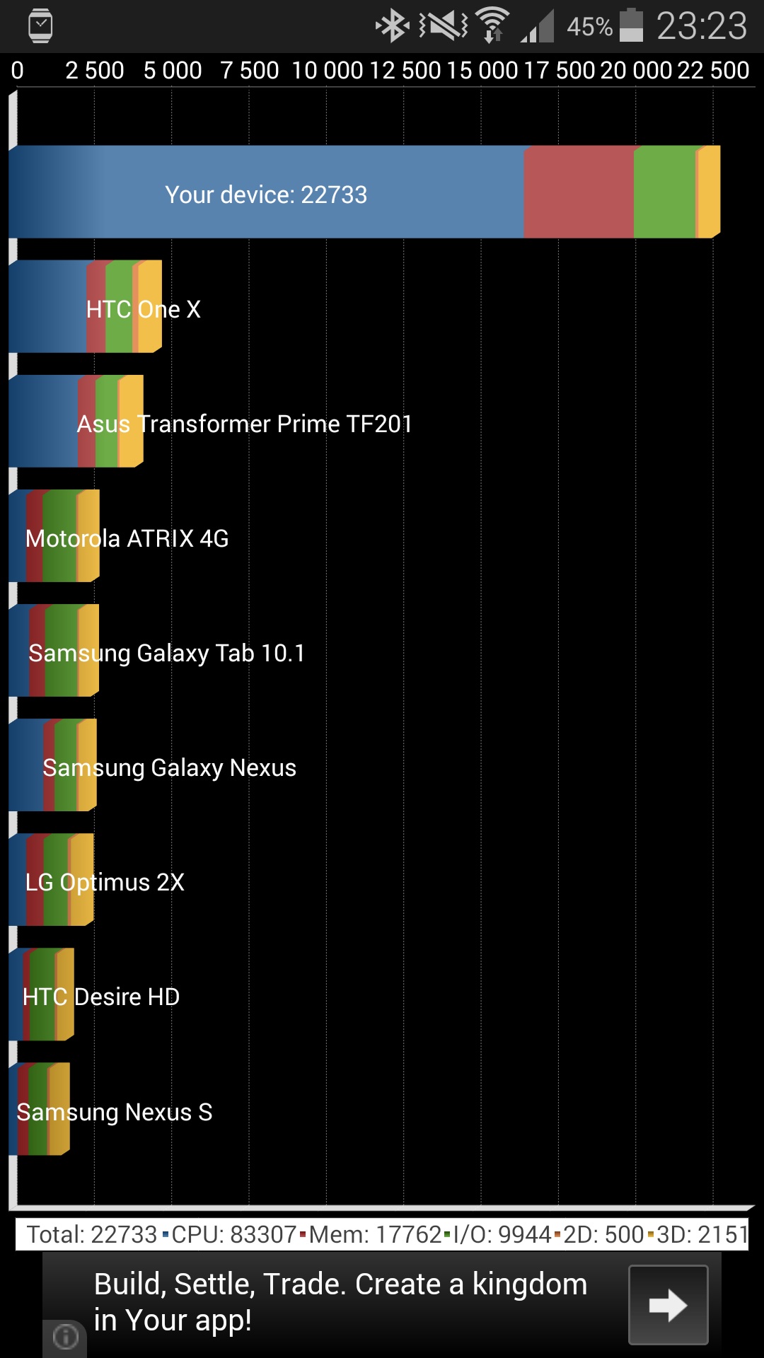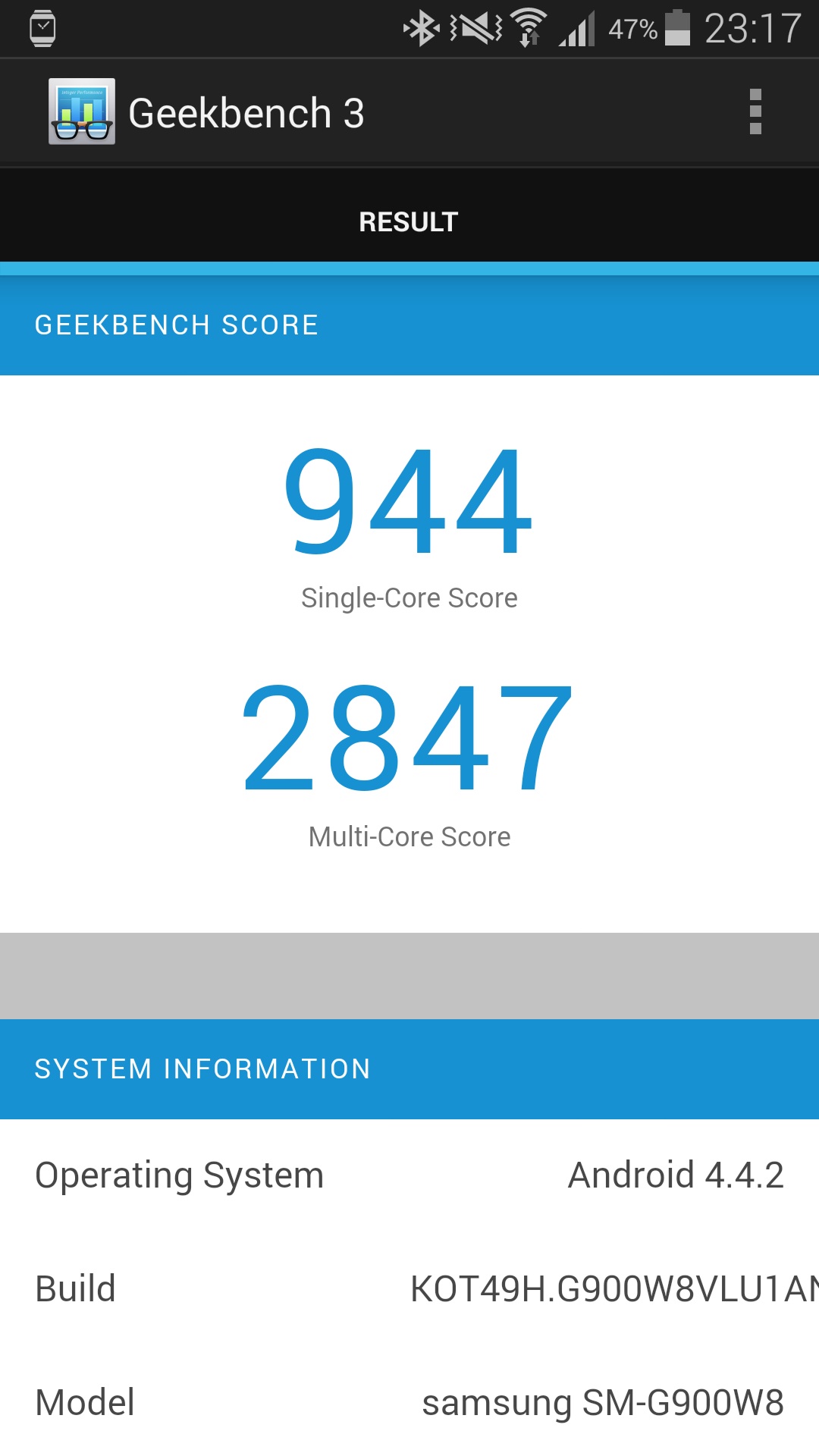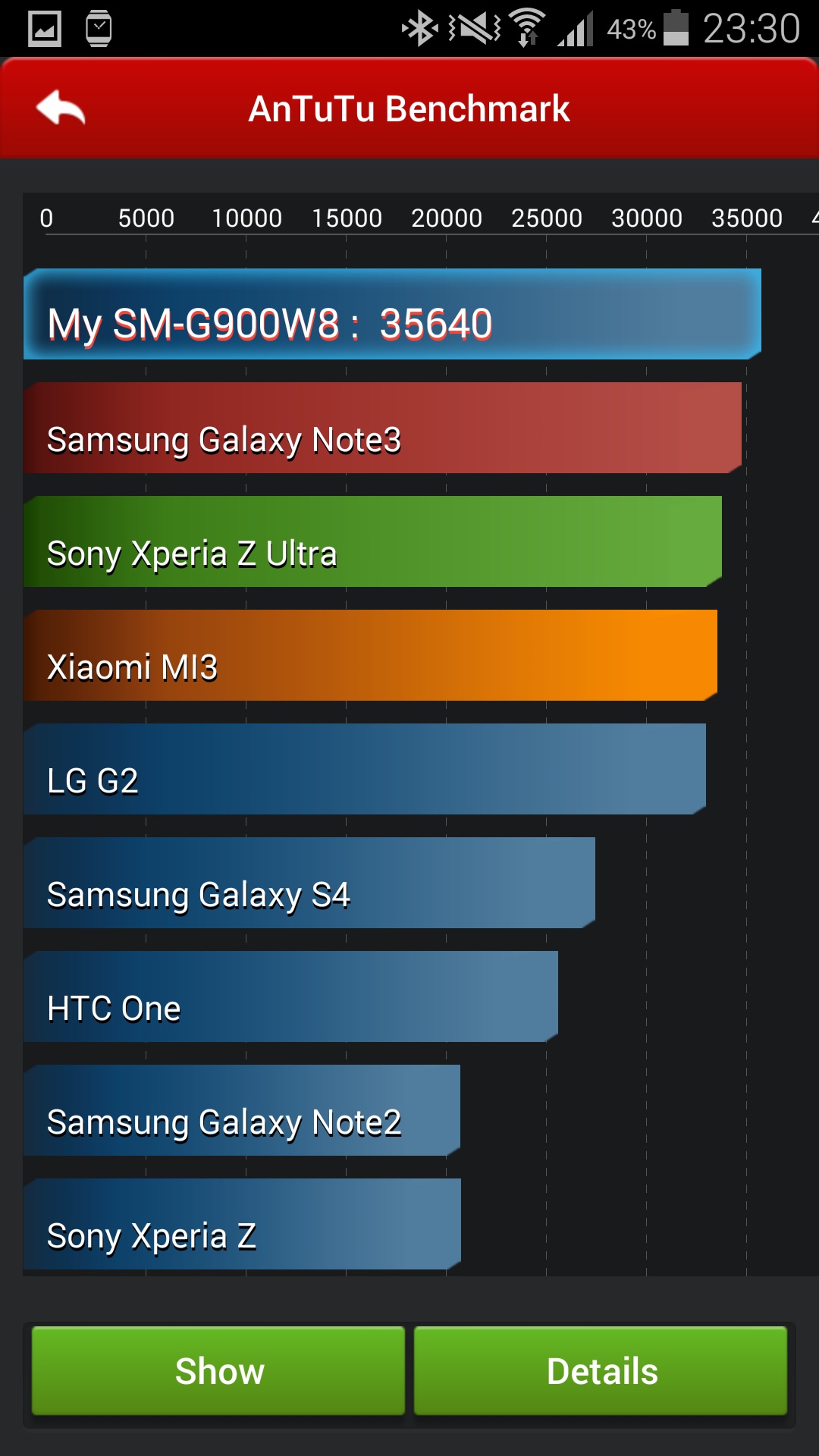 Le Samsung Galaxy S5 s’en sort très bien dans la plupart des situations de la vie quotidienne, même lorsque l’on utilise plusieurs applications en même temps. Je n’ai subi que très rarement des ralentissement, et malheureusement il y a fort à parier que TouchWiz soit à blâmer pour cela, car ces lourdeurs ne sont pas présentes sur la gamme Nexus, pourtant moins puissante.
