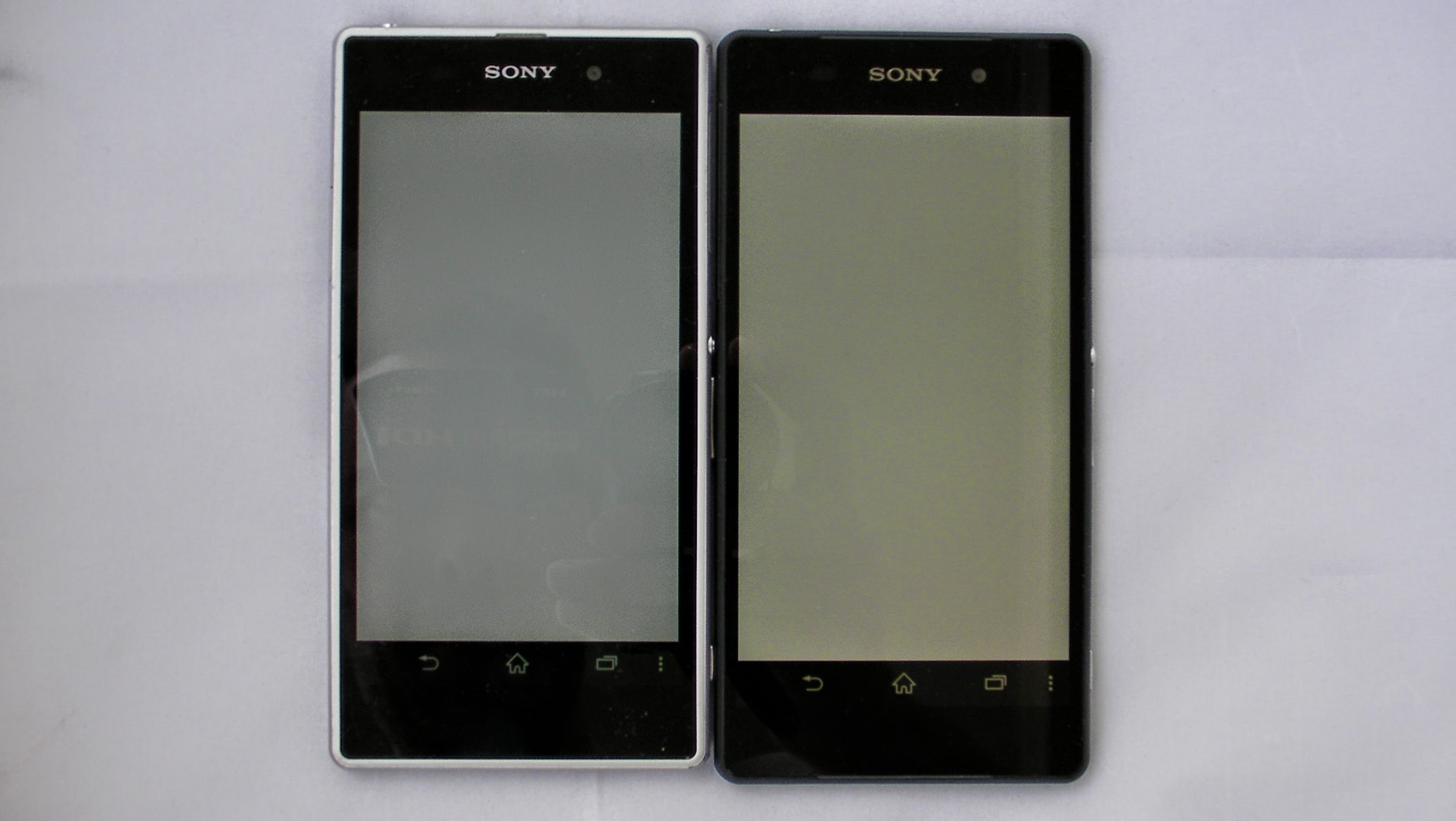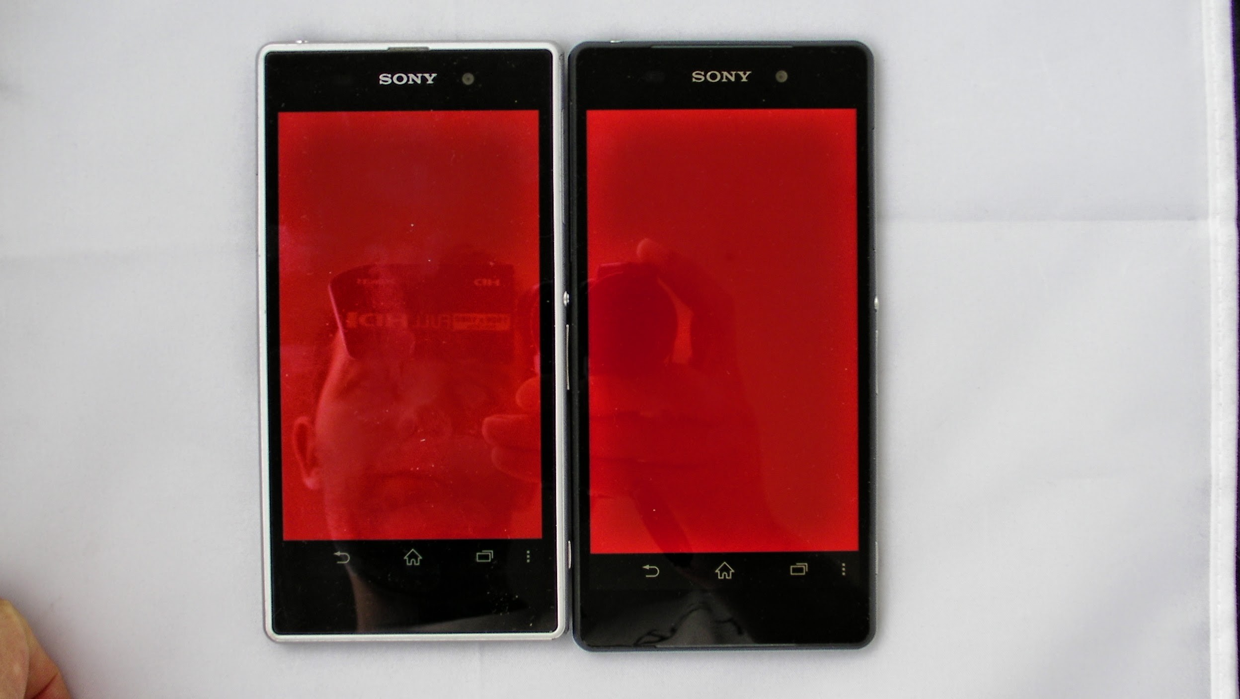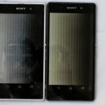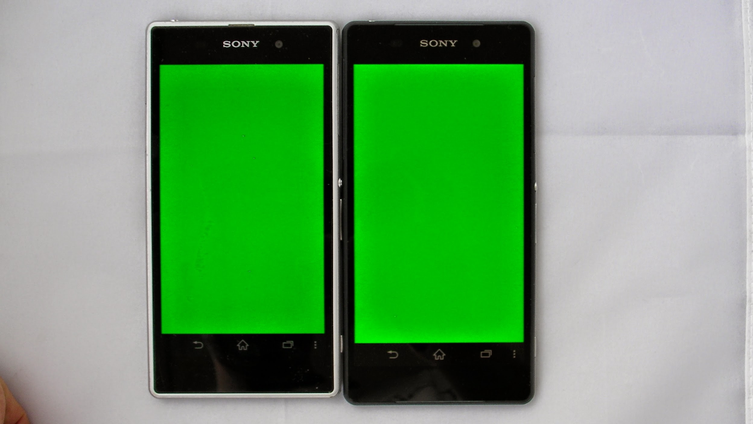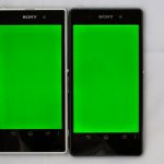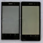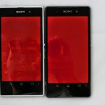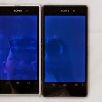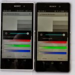 Ici, comparaison avec l’écran du Xperia Z1, dans une série d’écrans de couleurs primaires en utilisant l’application « Testscreen » :