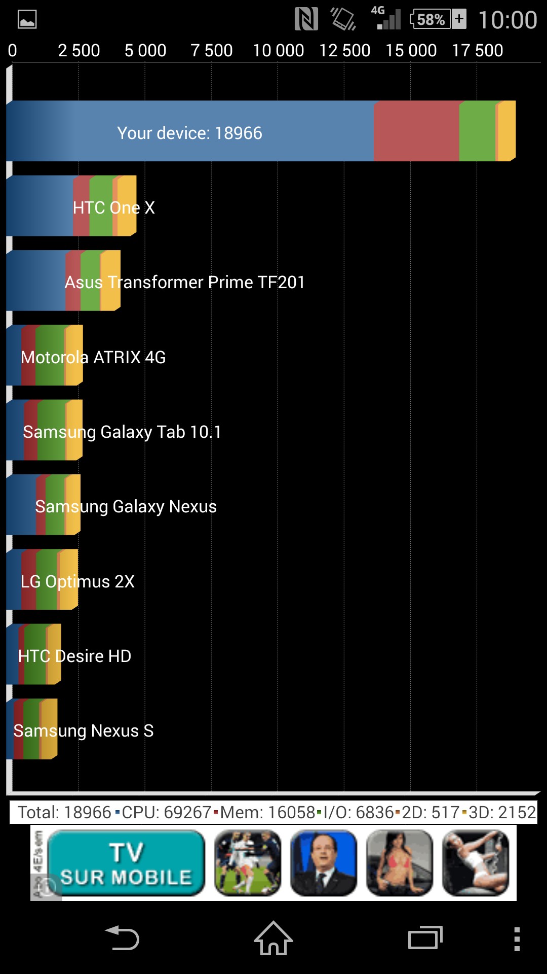 Sur Antutu, comme sur le traditionnel Quadrant ou sur GFX Bench, réputé pour son test 3D, le score frôle logiquement à chaque fois celui des meilleurs smartphones du moment. L’option qui permet de baisser légèrement les performances maintient les résultats du niveau des appareils hauts de gamme de 2013, ce qui est très honorable.