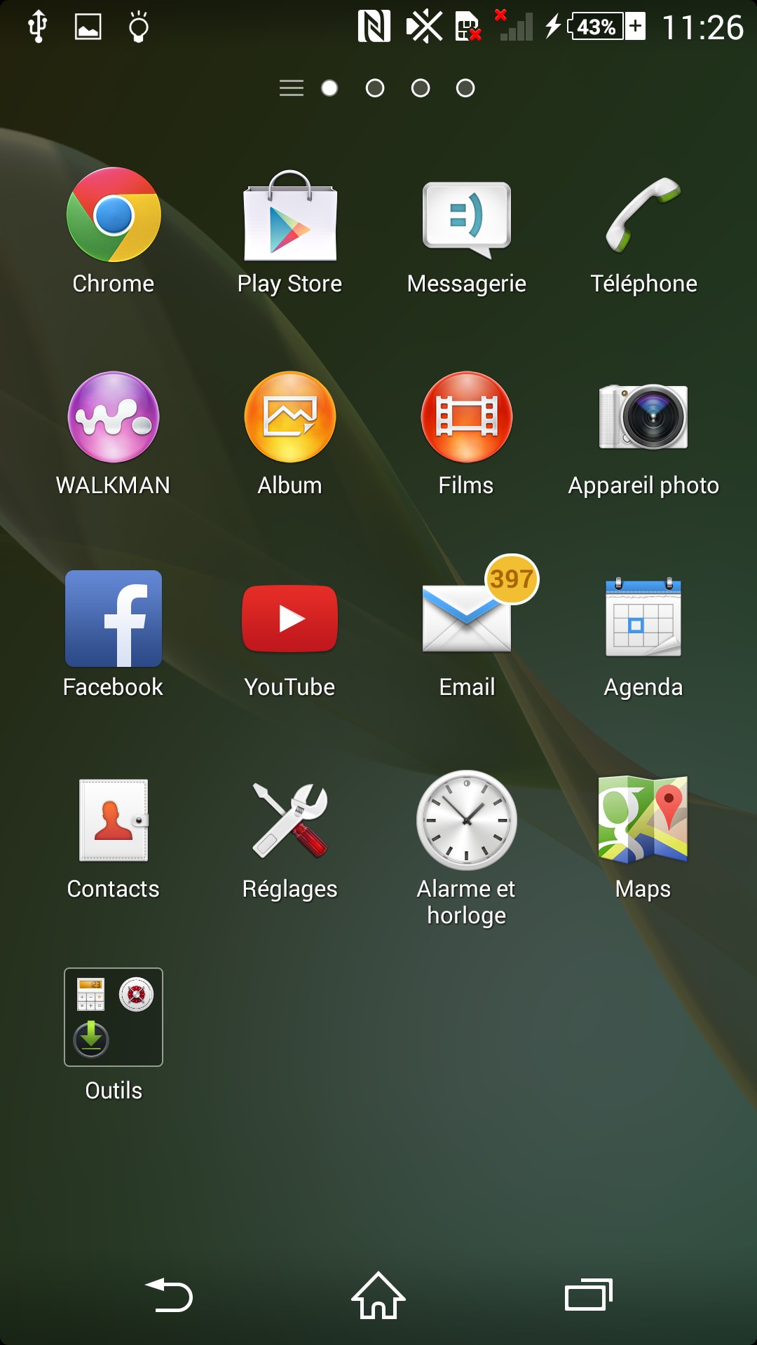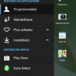 Le menu application n’est pas en reste. De prime abord assez classique, et proche du menu standard lui aussi, on retrouve une forte possibilité de personnalisation que la version Android standard réserve habituellement au bureau (ajout de dossiers, tri personnalisé…).