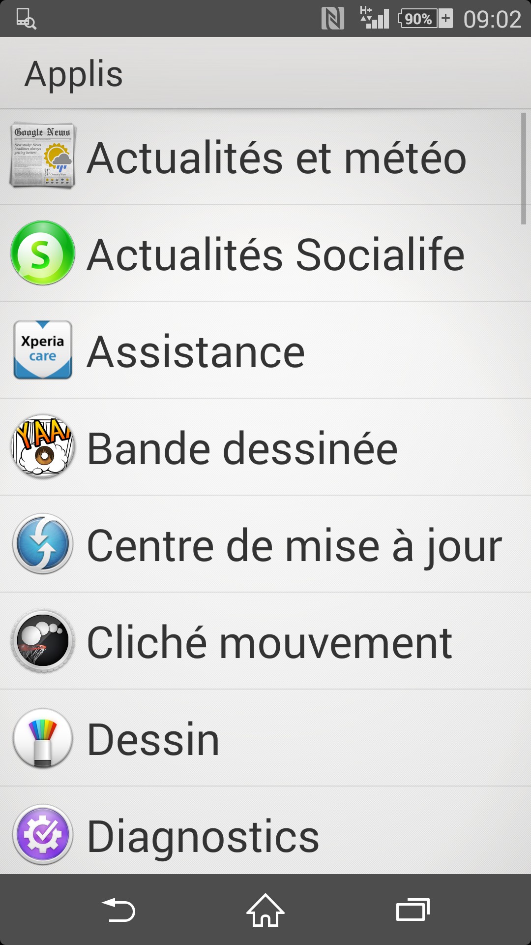 • Applications Sony que l'on ne peut pas désinstaller