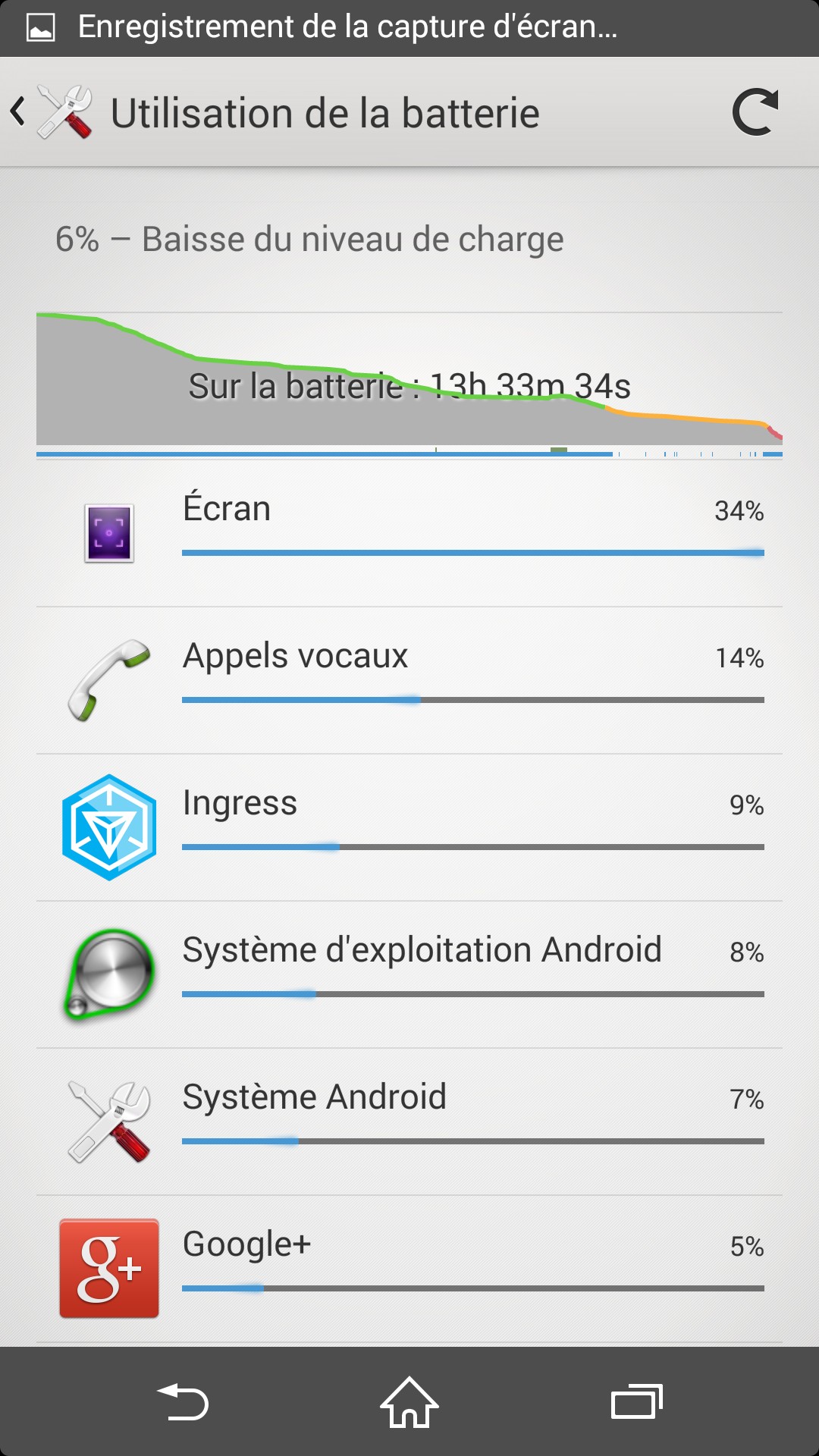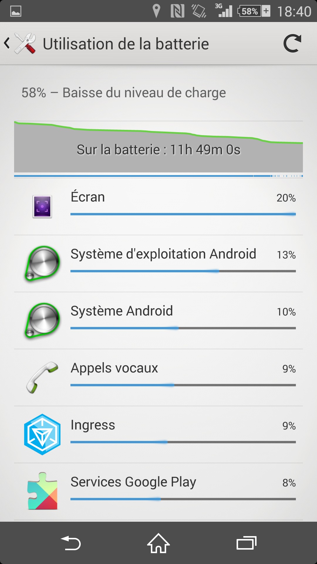 Plus concrètement, cette batterie nous aura toujours permis de finir confortablement ce que nous qualifierons comme une grosse journée, avec une utilisation très intensive de l’Internet mobile (autour de 5 Go par mois) : au-delà des 30 minutes d’appel téléphonique symboliques, s’ajoute en veille 2 boîtes mail synchronisées en push, 1000 flux RSS synchronisés en permanence, l’upload instantané des 10 photos prises dans la journée, Google Plus, Twitter, synchronisé en permanence… au total, une utilisation (de l’écran) d’environ 2 à 3 heures par jour, dont 20 minutes de jeux.