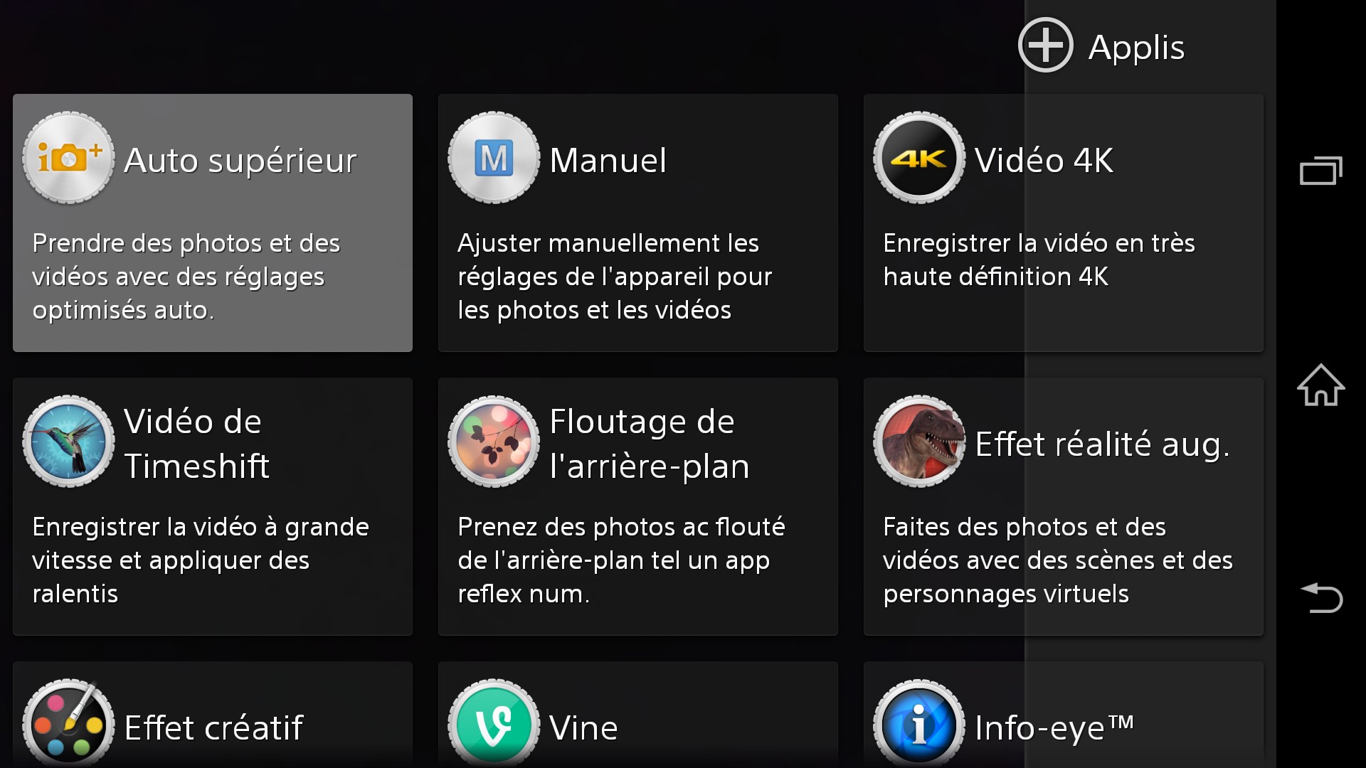 On peut alors s’en servir pour accéder rapidement à des horaires de passage de bus, à la télécommande de votre télévision, ou encore à l’activation du flash en mode lampe. Sony tient peut-être ici la fonctionnalité réussie et singulière, lui permettant de se distinguer des autres interfaces concurrentes.