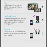 On apprécie l’effort de simplification proposé par Sony sur des sujets pas forcément triviaux. Le service le plus impressionnant est sans aucun doute constitué par l’application Throw qui concentre toutes les connexions sans fil : le NFC appelé « connectivité par simple contact », la technologie DLNA, appelée pour l’occasion « serveur multimédia », en passant par la traditionnel connexion USB, où Sony explique clairement la différence entre la connexion « stockage de masse » et « transfert multimédia ».