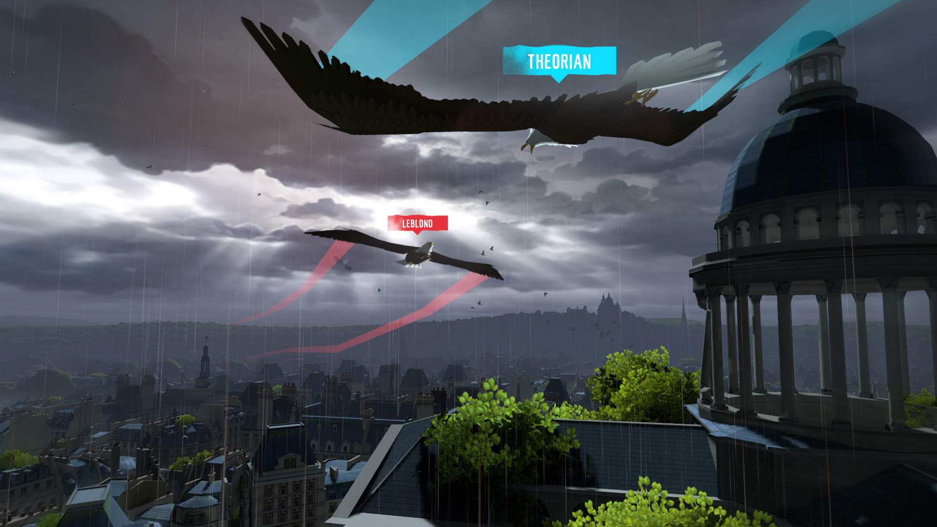 Eagle Flight se décline donc en trois sections en commençant par la campagne. Celle-ci débute alors que notre aigle éclot sous les yeux de ses parents qui nous apprennent ensuite rapidement à voler. Durant cette aventure, l’aigle devra passer à travers différentes missions afin de parfaire nos envolées. Puis, viendra le temps de se trouver une partenaire, étendre notre territoire et le défendre contre les nombreuses autres créatures qui survolent le ciel de Paris. Je trouve que c’était un mode intéressant qui proposait une bonne variété afin de diversifier la jouabilité. De plus, c’est un excellent tutoriel pour apprendre à voler de la manière la plus optimale sans trop fatiguer notre cou et pour se pratiquer avant de se lancer dans le multijoueur.