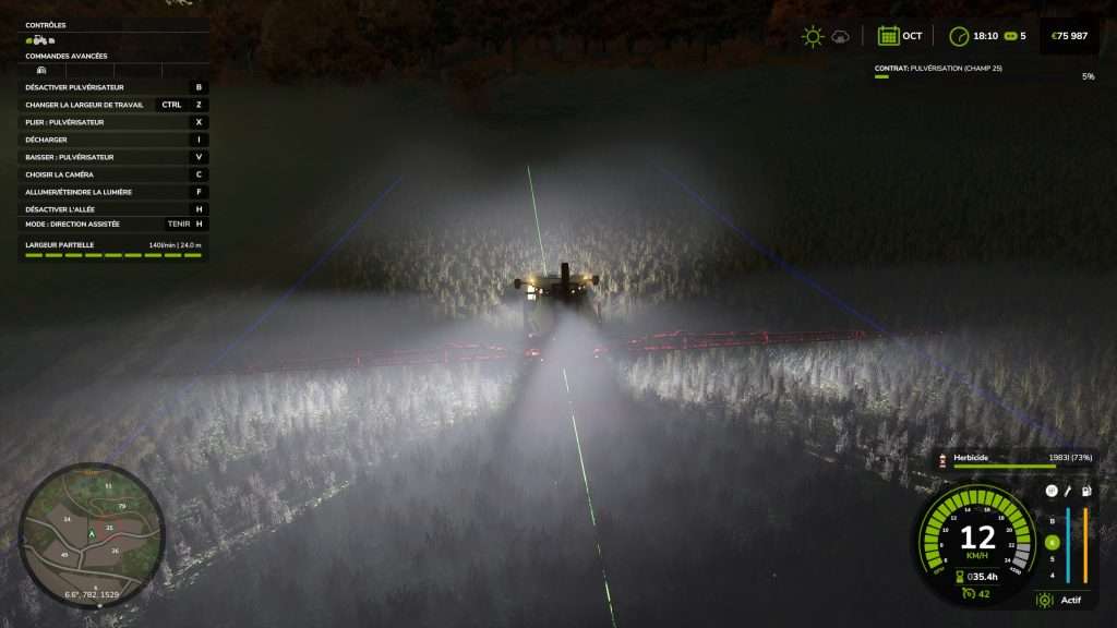 Depuis de nombreuses années désormais, la technologie a fait sa grande intégration dans le domaine de l’agriculture. Pratiquement inexistante du dernier jeu de la série, Farming Simulator 25 rattrape le coup avec l’intégration de son GPS. Celui-ci permet sur n’importe quel champ de tracer des lignes, mais aussi d’activer une conduite semi-autonome. Celle-ci vous aidera à garder le cap dans la bonne direction sans aucune intervention de votre part. Combiner avec la vitesse automatique, récolter d’énormes champs est bien moins difficile qu’auparavant. Bien entendu, tous ces systèmes restent facultatifs et c’est à vous de prendre la décision pour les utiliser ou non. D’ailleurs, le titre propose plusieurs options d’accessibilité pour offrir un maximum de personnalisation.