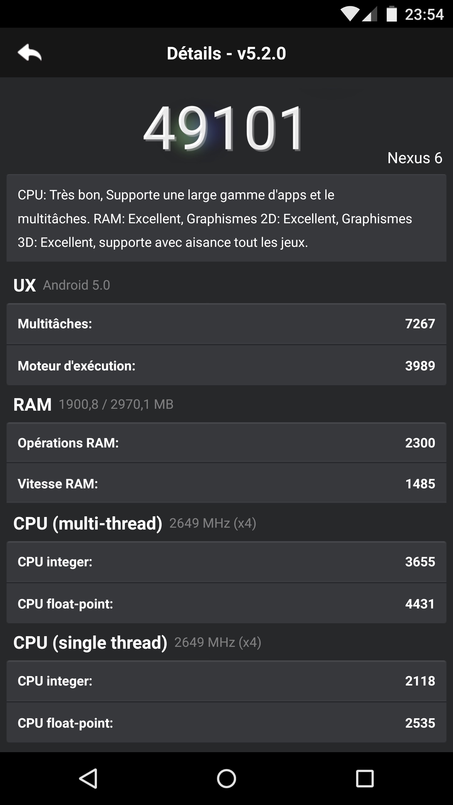 Performances du Google Nexus 6