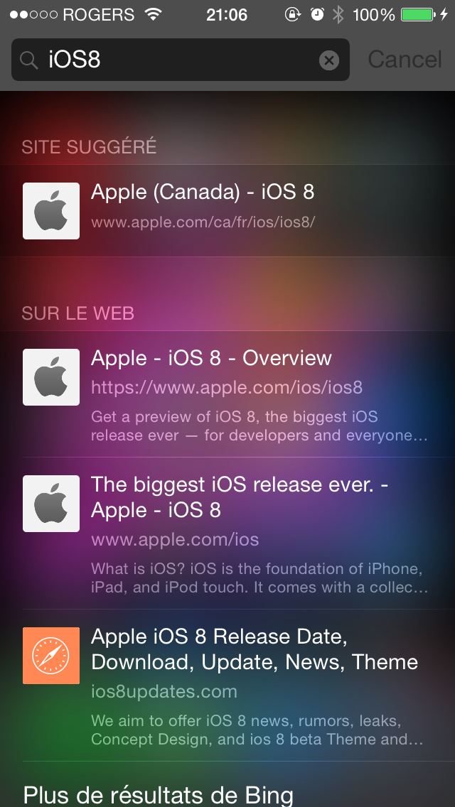 Bien sûr que la recherche universelle dans iOS 7 était fonctionnelle. Mais beaucoup moins que celle sous iOS 8. Nous nous sommes retrouvé plusieurs fois à utiliser Spotlight pour chercher des informations et fort souvent, nous avons été vraiment satisfait des réponses et des suggestions proposées par iOS. Maintenant avec des informations sur des restaurants et lieux à proximité, des recherches et du contenu de l’iTunes Store suggérés ainsi que plusieurs autres nouveautés dans le système. Exemple du quotidien, au lieu d’ouvrir Plan pour trouver la gare du train que je devais prendre, j’ai simplement entré « Gare » dans Spotlight qui m’a immédiatement suggéré « Gare de Deux-Montagnes ». J’ai trouvé cela rapide et utile. C’est une forte amélioration dans iOS que nous avons hâte de voir évoluer.