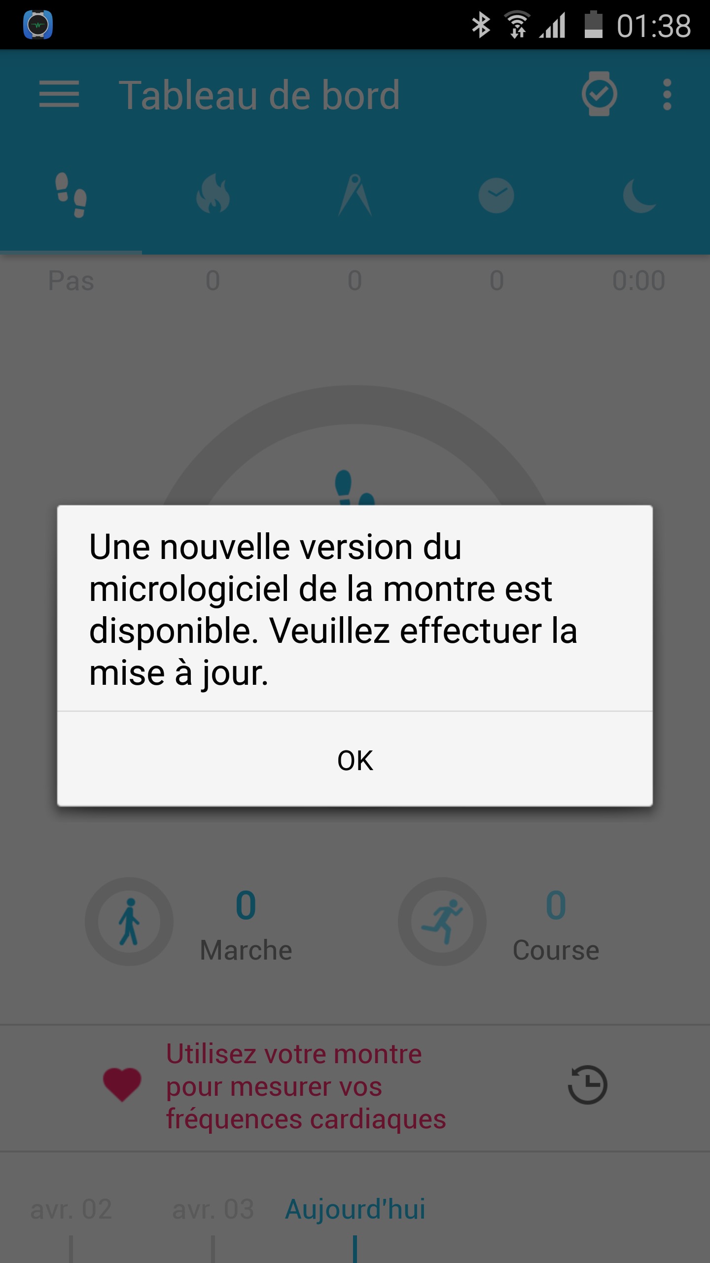 L’application s’occupe ensuite de vérifier si une mise à jour est disponible pour la montre, puis de l’installer. Cette étape n’est en revanche pas obligatoire pour démarrer l’utilisation, les plus impatients pourront donc la faire par la suite.