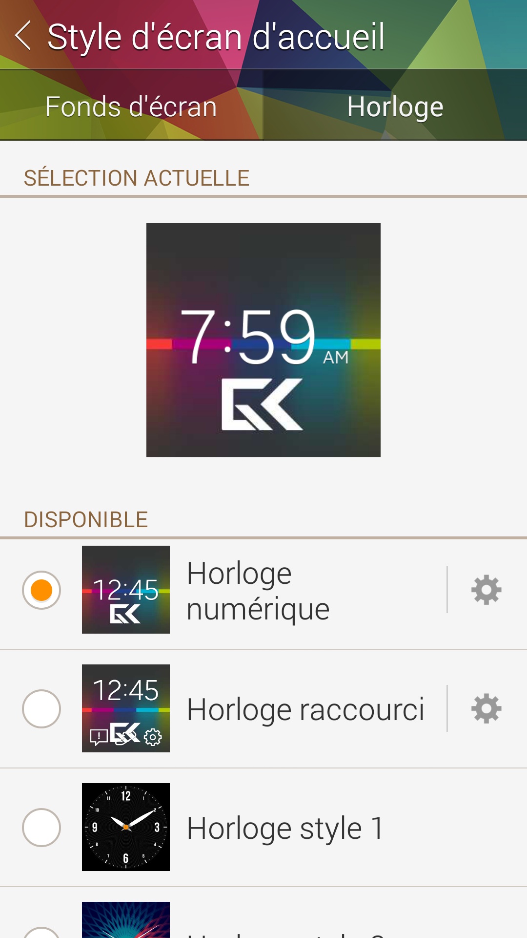 Il existe de nombreuses possibilités pour que l’écran d’affichage de l’heure soit à notre goût. Certains exemples sont déjà préinstallés, mais on peut également choisir sa propre image, le style du texte ou du cadran ainsi que la couleur des différents éléments. C’est par exemple grâce à cette fonction que nous avons mis le logo de Geeks and Com’ sur l’appareil.