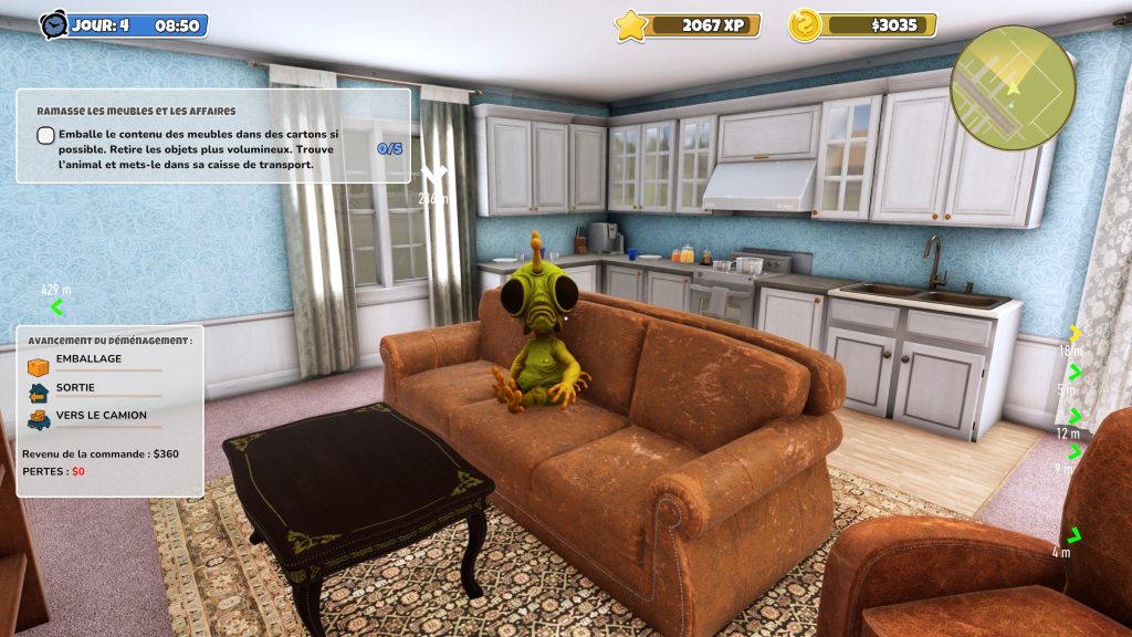 Le cœur du jeu repose sur une boucle extrêmement répétitive. Chaque mission de Moving Simulator suit pratiquement la même structure en soi, la répétition n’est pas un problème. Elle est même souvent au cœur des jeux de simulation. Cependant, faut-il que cette répétition soit soutenue par des objectifs clairs, une progression tangible ou des mécaniques qui s’enrichissent avec le temps. Ici, ce n’est malheureusement pas le cas. Les missions se succèdent sans apporter de nouvelles contraintes réellement intéressantes. Les environnements changent légèrement, certains objets deviennent plus lourds ou plus fragiles, mais le ressenti global reste identique.