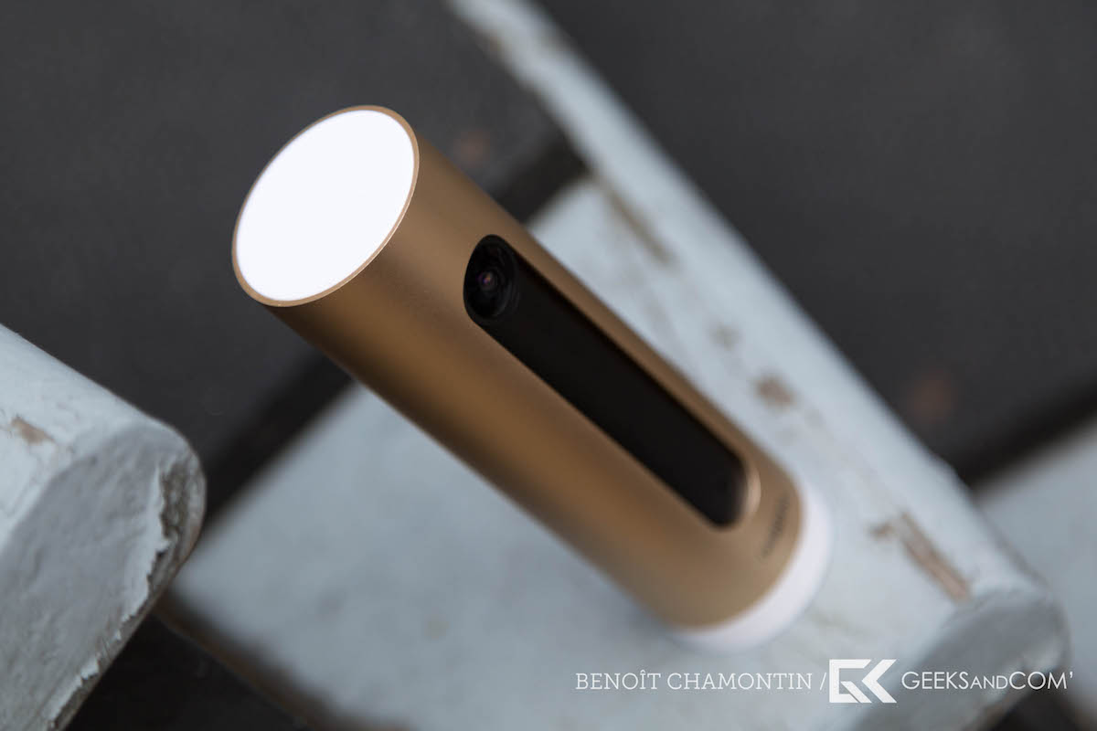 La caméra de Netatmo opte pour un design agréable, mais peu discret. Il est en effet assez simple de voir qu’une caméra surveille la pièce, ce qui n’est pasforcément idéal. La couleur dorée y est pour beaucoup, car bien qu’au goût du jour et idéale pour être assortie avec un iPhone, elle n’en fait pas un objet passe partout. On sent donc à ce niveau une volonté de faire un bel objet que l’on n’aura pas crainte d’exposer dans une pièce à l’entrée de la maison, plutôt qu’une caméra de sécurité discrète que l’on chercherait à cacher.
