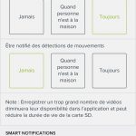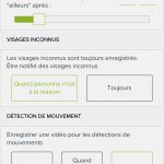 Suivant la même logique, il est possible de préciser quand des séquences vidéo seront enregistrées sur la carte micro-SD de l’appareil, afin de ne pas la surcharger. On peut ainsi demander à ce que les mouvements soient enregistrés tout le temps, uniquement lorsque tous les membres de la famille sont sortis ou jamais. Par ailleurs, les notifications peuvent être groupées avant l’envoi, afin d’éviter de saturer le téléphone de l’utilisateur. On recevra ainsi « XXX et un visage inconnu ont été identifiés » si les deux personnes passent dans la même minute, plutôt que d’être avertis à deux reprises et de s’inquiéter d’un potentiel intrus alors que XXX fait partie de la famille et accompagne la personne.