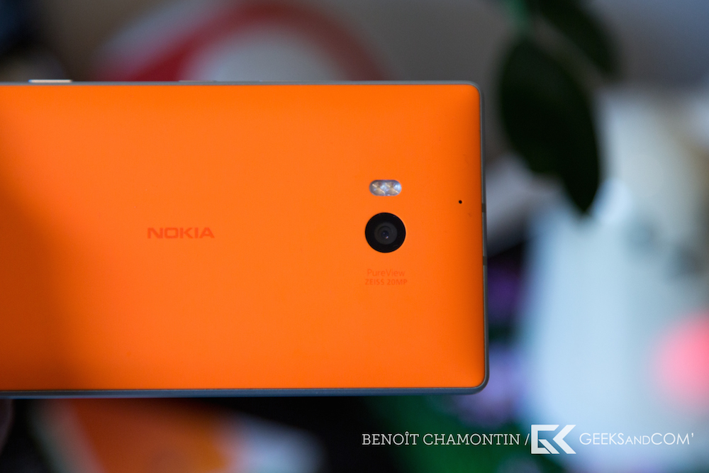 L’arrière de l’appareil opte pour un polycarbonate coloré, caractéristique des Nokia. Plusieurs versions sont disponibles, suivant les pays, en noir, blanc, orange ou vert. On pourra regretter l’absence de cyan ou de jaune, pour ceux qui les appréciaient sur les appareils précédents.