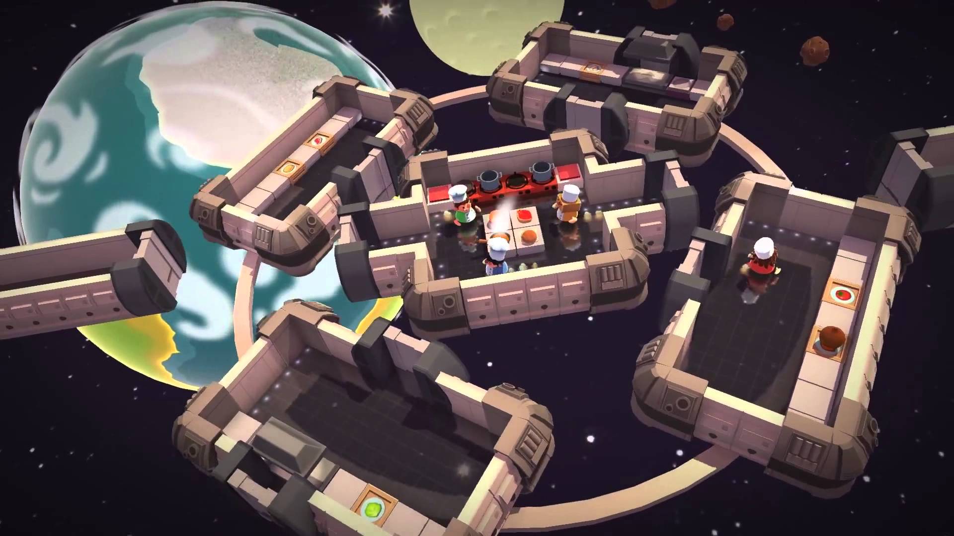 En termes de scénario, le tout est bien simplifié, car le jeu ne mise pas sur cet élément afin de plaire au public. Dans Overcooked, les développeurs nous mettent dans la peau d’un chef cuisinier qui habite dans le royaume Oignon. Ce dernier a été attaqué par des extraterrestres et vous devez leur remplir l’estomac afin de sauver le monde.