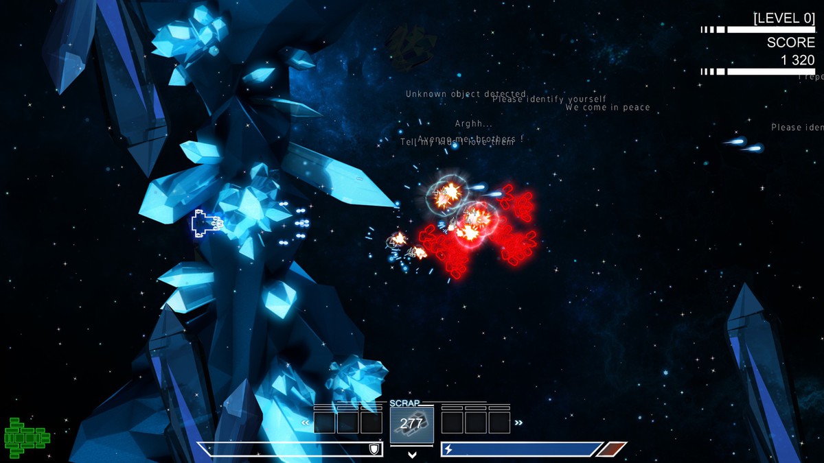 Ce qui vous donnera le choix, c’est le type de loot récupéré sur les ennemis. Il y en a deux genres : les éléments de constitution du vaisseau (armement, propulsion, défense, etc.) et le scrap. Ce dernier vous sert de monnaie pour l’assemblage de votre vaisseau, ainsi que sa réparation quand vous débloquerez la technologie nécessaire.