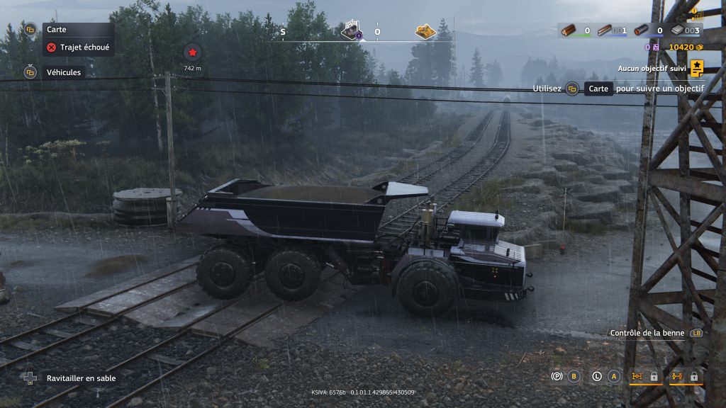L’ambiance générale de RoadCraft réussit à instaurer un équilibre entre rigueur technique et immersion. Visuellement, sans être une claque graphique, le jeu s’en sort de façon honorable. Les textures sont détaillées, les effets de particules et de poussière donnent une bonne impression de réalisme. Le moteur physique fait bien son travail notamment pour la déformation du terrain. La direction artistique réussit à transmettre l’ambiance de ce monde brisé. Il y a quelque chose d’étrangement apaisant à restaurer un pont au milieu d’une zone sinistrée. Malheureusement, je regrette qu’il n’y ait pas d’option pour changer la météo. Je commence à me sentir déprimée après une vingtaine d’heures pratiquement toujours sous la pluie.