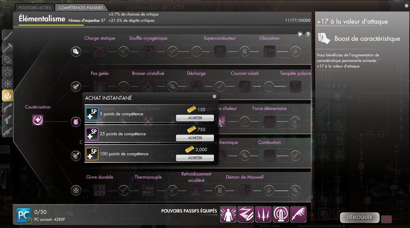 Même chose pour l’achat d’objets qui nous permettent d’améliorer nos armes plus rapidement ou carrément l’achat de points de compétence, tout est accessible immédiatement via les aurums. Finalement, on peut augmenter la puissance de nos armes rapidement grâce encore une fois à des achats uniquement accessibles via la monnaie aurums.