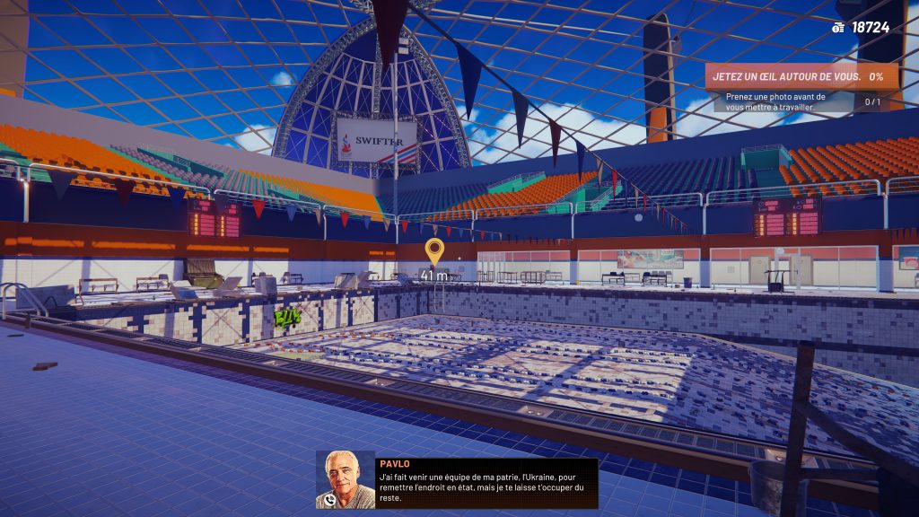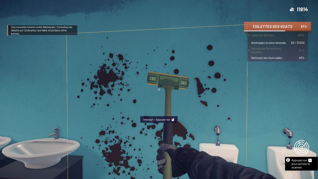 Une portion importante pour la réussite d’un jeu de simulation est sa jouabilité. Du côté de Sports: Renovations, on retrouve des actions plutôt classiques pour le genre. Vous allez devoir ramasser les ordures, nettoyer les murs et les sols, donner une nouvelle couche de peinture, réparer les appareils cassés, meubler et décorer l’endroit. Les travaux à l’extérieur du stade de votre ville natale permettent d’amasser de l’argent pour ensuite faire la même chose de votre côté. Les sensations sont bien réussies et on ressent un grand sentiment de satisfaction après un nettoyage complet. J’ai particulièrement aimé qu’au fur et à mesure de l’aventure, les développeurs n’ajoutent pas nécessairement des tâches ingrates juste pour ajouter du temps de jeu. Le studio est plutôt généreux et n’hésite pas à effectuer votre travail une fois que vous atteignez un pourcentage de complétion assez élevé.