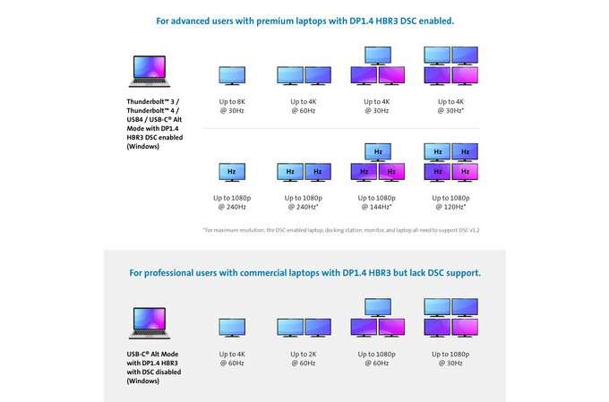 Pour ma part, l’option de 2 écrans à 4K à 60 Hz était plus que suffisant, mais on peut aller jusqu’à 4 écran en 4K 30 Hz ou en 1080p 120 Hz. Alors, dans plusieurs années quand les écrans de 8K seront un peu plus commun, la station d’accueil deviendra peut-être désuète. Cependant, on est protégé pour très longtemps pour l’instant.