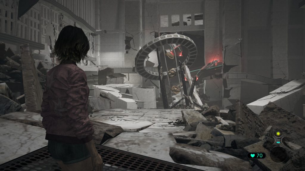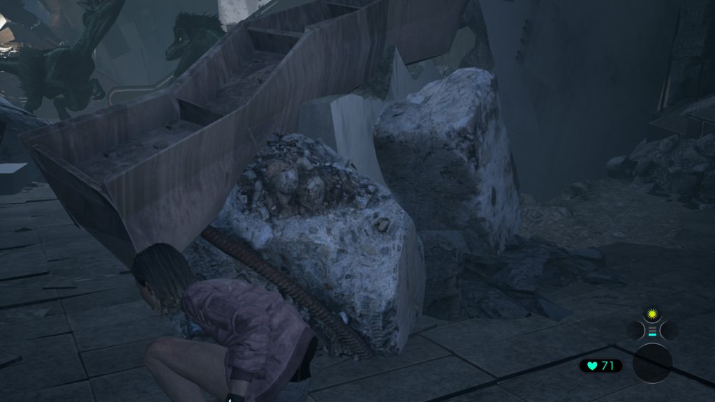 Le level design, de son côté, mise clairement sur la prudence et la patience. Certains niveaux sont assez vastes et demandent parfois de longs détours pour minimiser les risques d’être repéré. Observer les déplacements des créatures, attendre le bon moment et planifier son trajet font partie intégrante de l’expérience. Chaque zone propose également des objectifs précis qui encouragent à utiliser les éléments de l’environnement et à explorer les environs, notamment pour trouver des stations de recharge permettant d’alimenter la montre connectée. Le jeu attribue même un pointage à la fin de chaque épisode, accompagné d’un rang, pour les joueurs qui souhaitent optimiser leur parcours et améliorer leur performance.