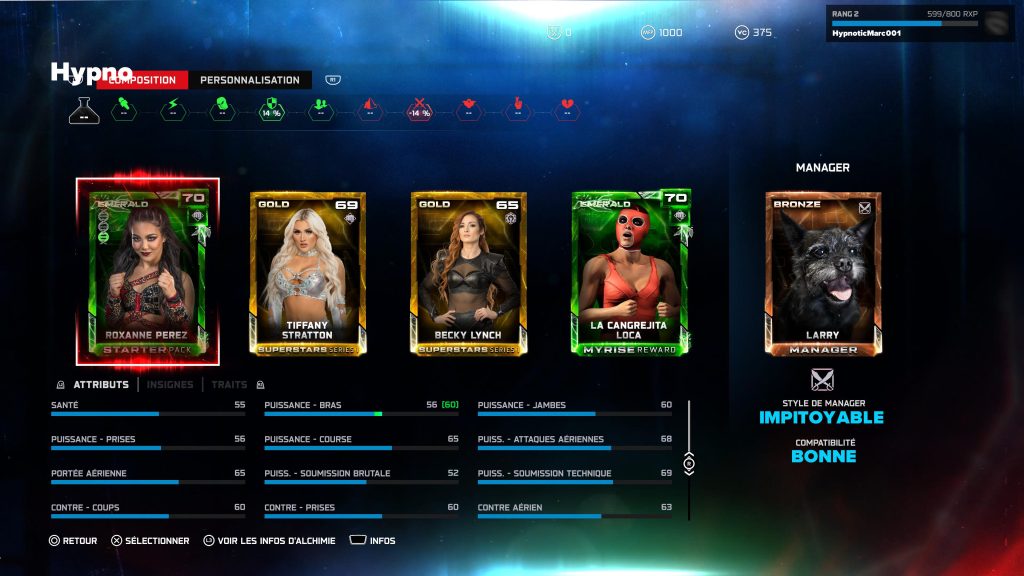 L’un des autres modes bien connus des joueurs réguliers est Ma Faction. Celui-ci repose sur un système de cartes à collectionner permettant de créer sa propre équipe de lutteurs. Ce mode ajoute quelques nouvelles mécaniques cette année, notamment des synergies entre les membres de la faction et différents défis permettant de débloquer de nouvelles cartes. Même si ce type de mode ne plaira pas à tout le monde, il offre un autre type de progression pour ceux qui aiment collectionner et optimiser leurs équipes.