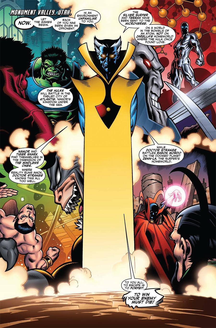 Dans Thor : Ragnarök, Hela et Loki auront bien progressé dans l’avancement de leurs sombres plans lorsque Thor se rendra compte de ce qu’ils manigancent. Hela finit par créer l’incident qui pousse Thor à s’exiler hors d’Asgard. D’après nos informations, les choses vont très mal lorsque Thor affronte Hela. Elle ne bannit pas seulement Thor d’Asgard, mais elle détruit également Mjolnir ! Il atterrit sur une planète de gladiateurs où il est contraint de se battre pour sa vie et où on lui rase la tête. Appelons cette planète Sakaar, comme dans les comics. Thor est conscient de devoir s’équiper d’une arme bien particulière pour terrasser Hela et Loki (un quelconque rapport avec le Gant de l’Infini ? puisque Thor se rend sur Asgard après ses visions dans Avengers : L’Ère d’Ultron, craignant pour les Pierres d’Infinités aussi appelées Gemmes de l’Infini), mais pour ce faire, il doit quitter cette planète de gladiateurs. Thor réussit à vaincre tous ses adversaires aliens en combat de gladiateurs, même démuni de Mjolnir. Il doit alors faire face à un dernier opposant, le champion de l’arène, qui n’est autre que The Hulk.
