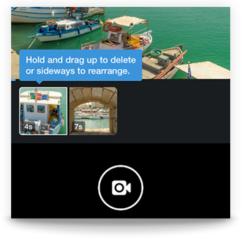 En maintenant le bouton d’enregistrement enfoncé, il est possible de commencer à filmer et de créer plusieurs séquences. Après la prise de vue, il est possible d’éditer rapidement la vidéo pour réorganiser l’ordre des séquences. En revanche, il ne sera pas possible d’ajuster le son / l’image ou de rajouter des filtres par exemple.