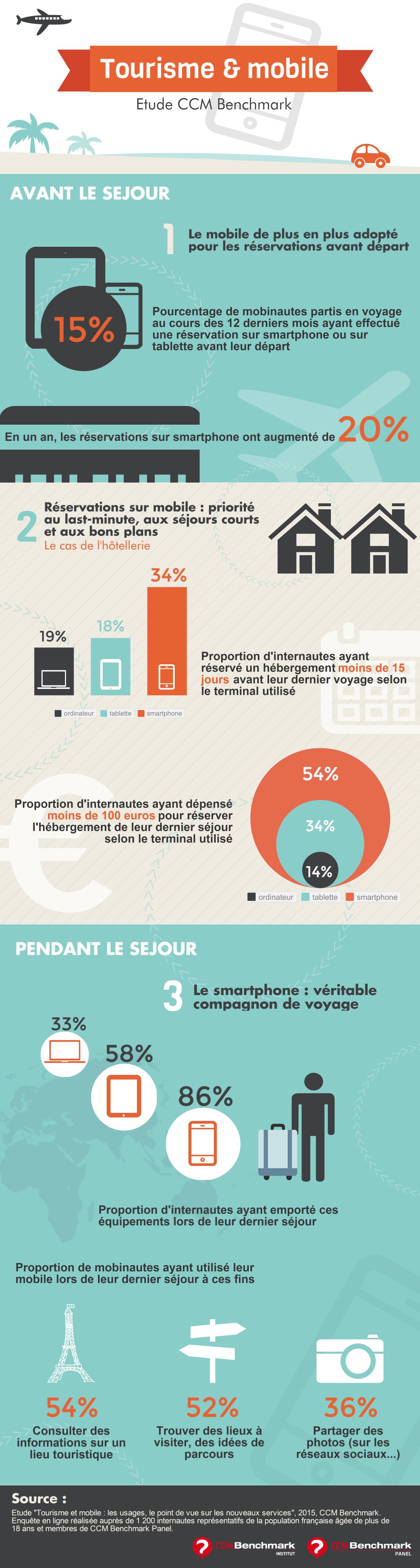 Selon cette étude réalisée auprès de 1 200 personnes en France, les séjours de dernières minutes sont les plus privilégiés par les mobinautes. Ils sont ainsi 34 % à prendre la décision de partir quelque part à partir de leur téléphone. Par ailleurs, plus de la moitié s’intéresse à des séjours bradés ou en dessous de 100 euros.