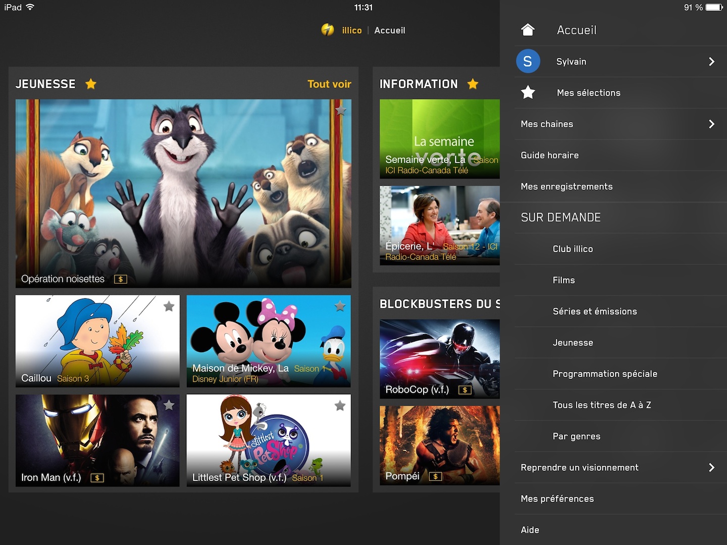 Ainsi, on retrouve une nouvelle interface qui regroupe le contenu par thématique et s’adapte selon les recherches / préférences des différents utilisateurs. Il est d’ailleurs possible d’avoir plusieurs profils dans l’application illico pour iPad afin de créer une expérience propre à chaque membre de la maison. La personnalisation proposée ici se rapproche de ce que peuvent proposer d’autres services vidéos en ligne, comme Netflix.