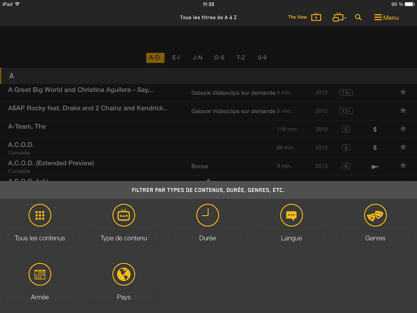 La recherche connait également une grande amélioration et combine maintenant les différents contenus disponibles, qu’ils soient en direct, sur le Club Illico à la demande ou sur l’enregistreur. Il est d’ailleurs possible de chercher un programme en fonction de nombreux critères pour vraiment planifier ce que l’on veut regarder : durée du programme, langue, type de contenu, pays… De plus, il y a l’intégration de sources externes, notamment pour compléter les informations sur un film ou un acteur avec Wikipedia, par exemple, ou pour connaître la notation d’un film avec IMDB et Cinoche.com.